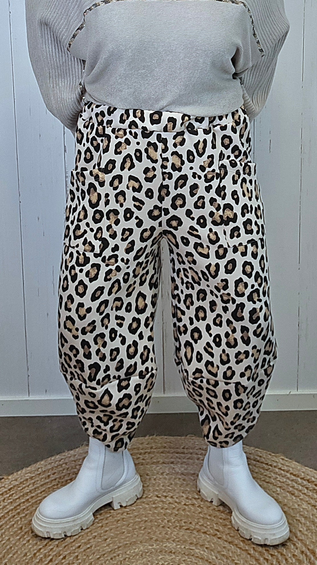 Trendy tulipanbukse i lekkert leo-mønster med behagelig stretch og en romslig passform.