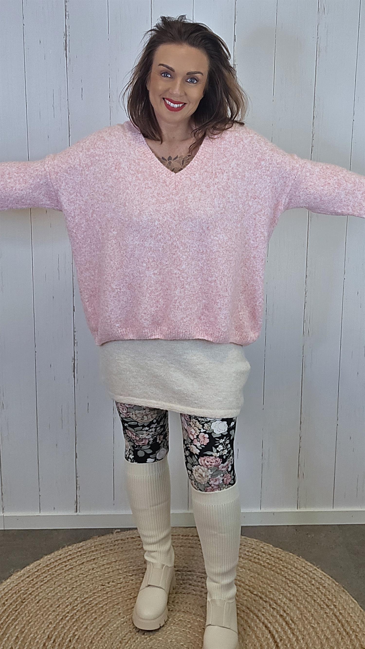 En deilig myk og varm genser med ribbestrikket kant nederst og langs den dype V-halsen. Genseren har fulle ermer med ribbekant nederst, noe som gir den et avslappet, men samtidig pent uttrykk. Stoffet er supermykt og komfortabelt – perfekt til både hverdag og kos.