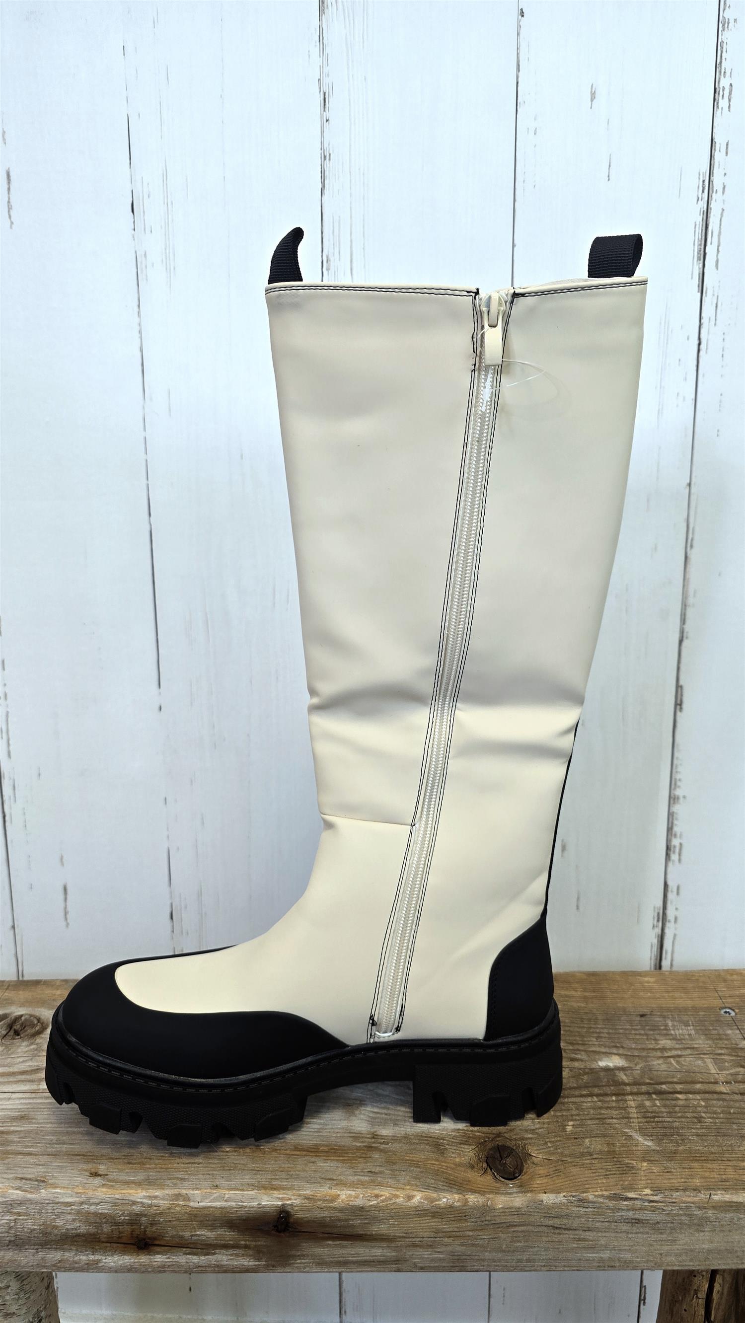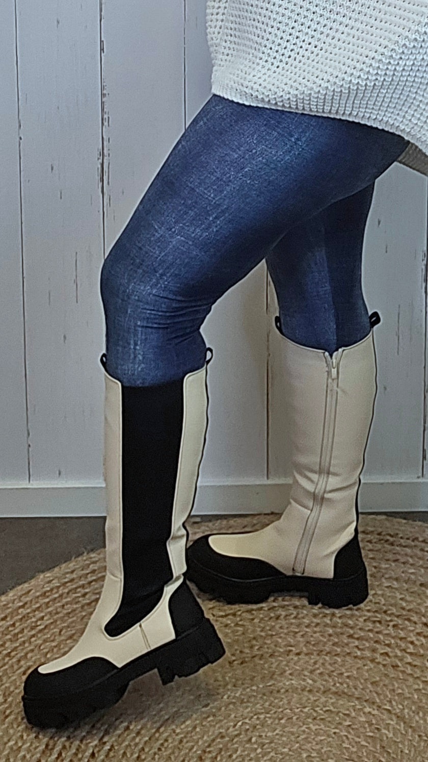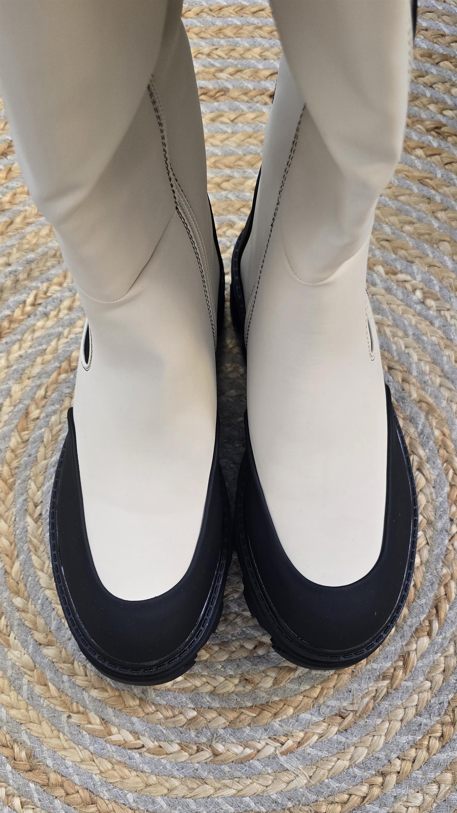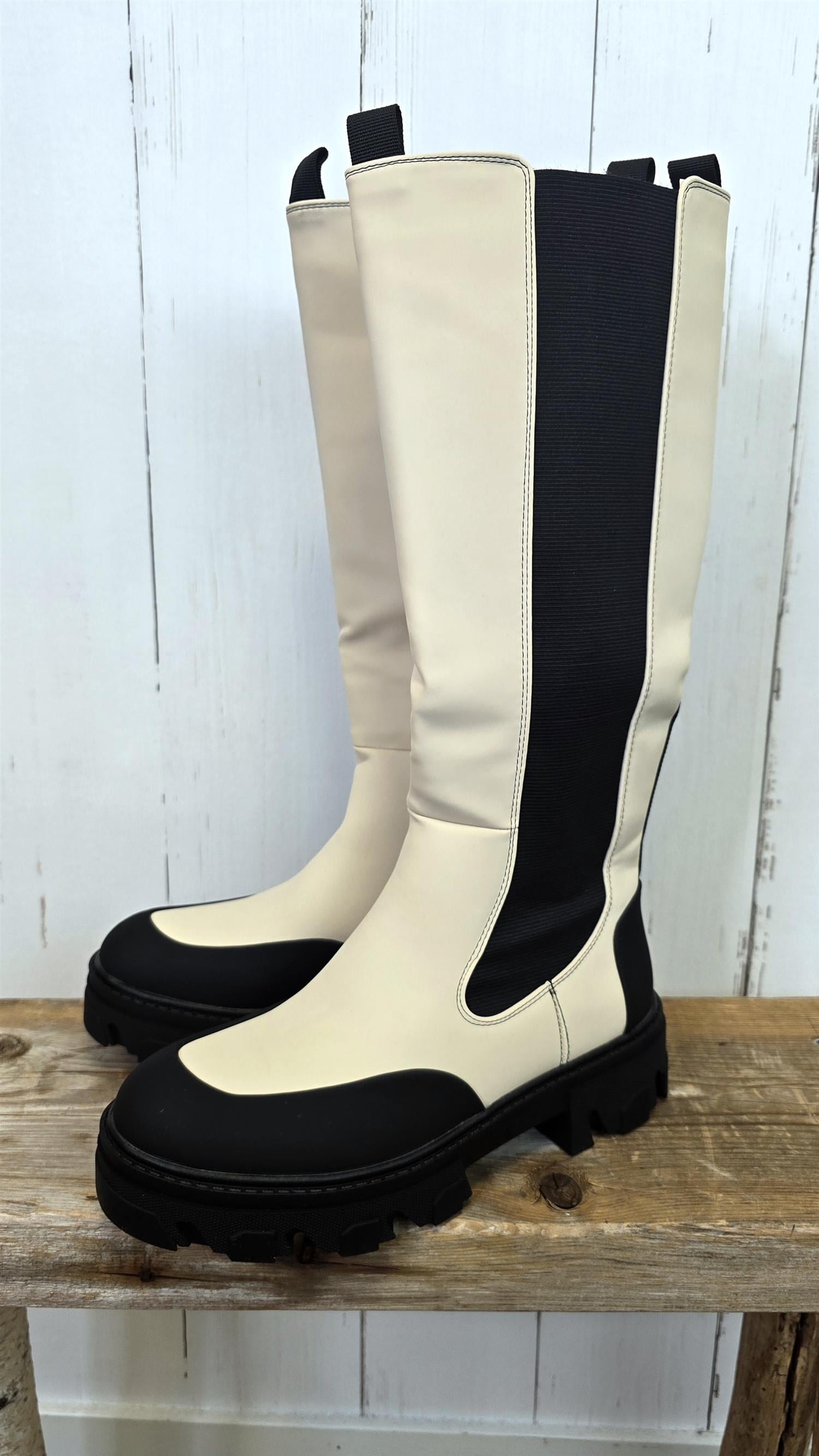 Trendy høye boots med kraftig såle, elastisk sidepanel og tøff tofarget finish. Litt små i size. Er du mellom 2 size ta en større.