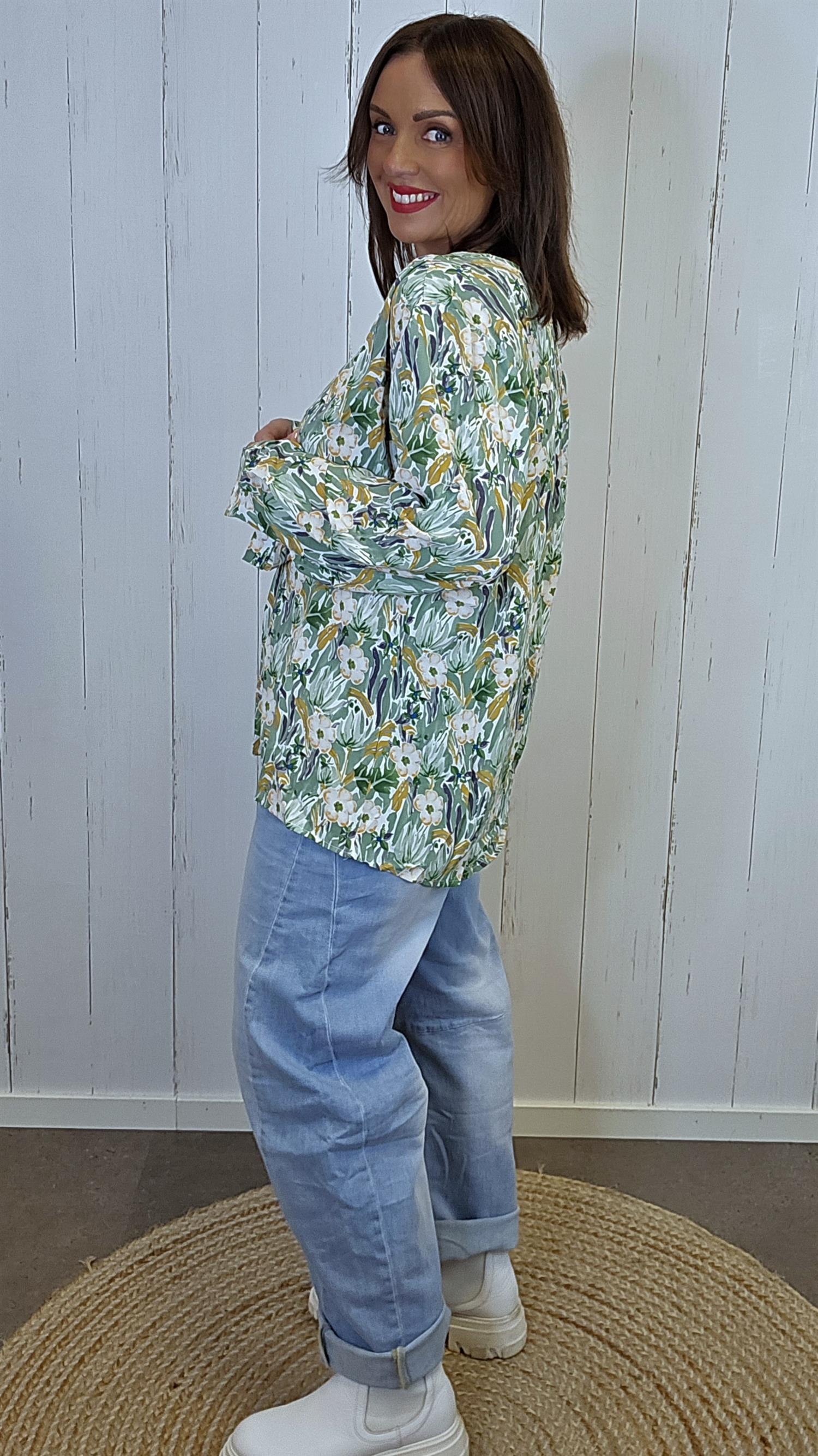 Elise blomsterbluse lys grønn