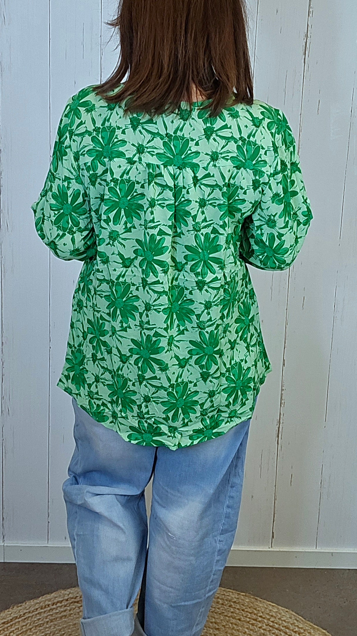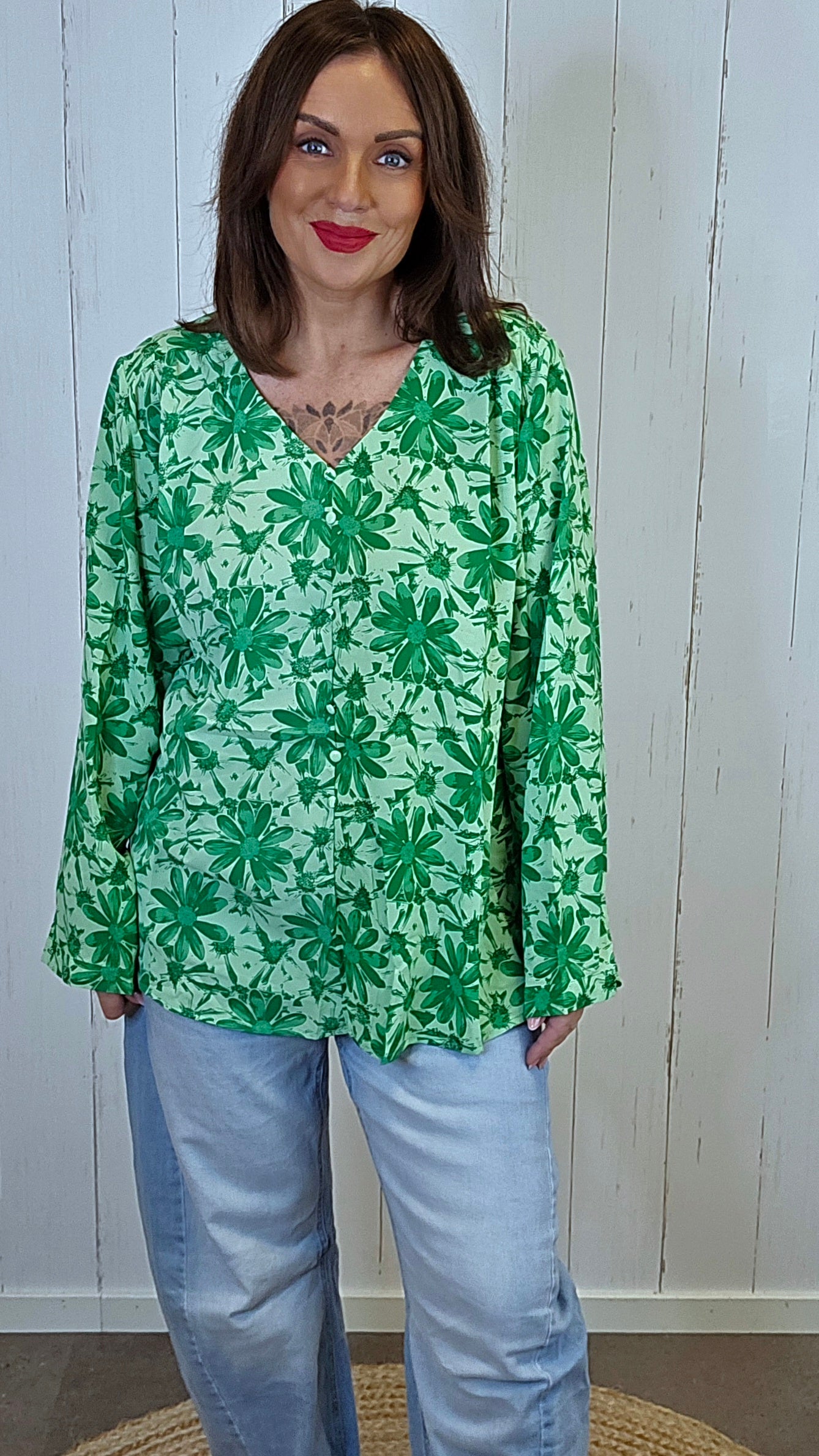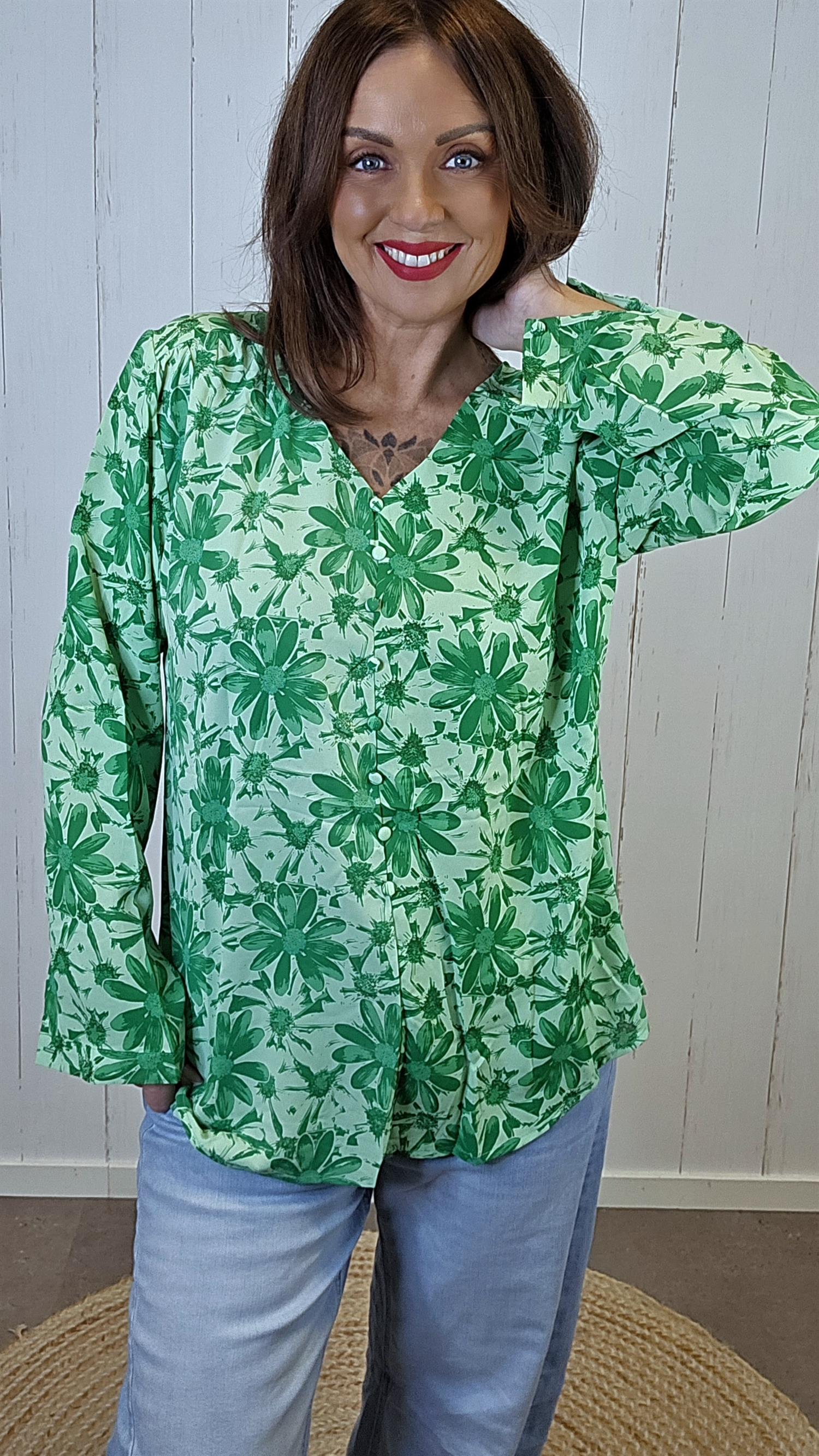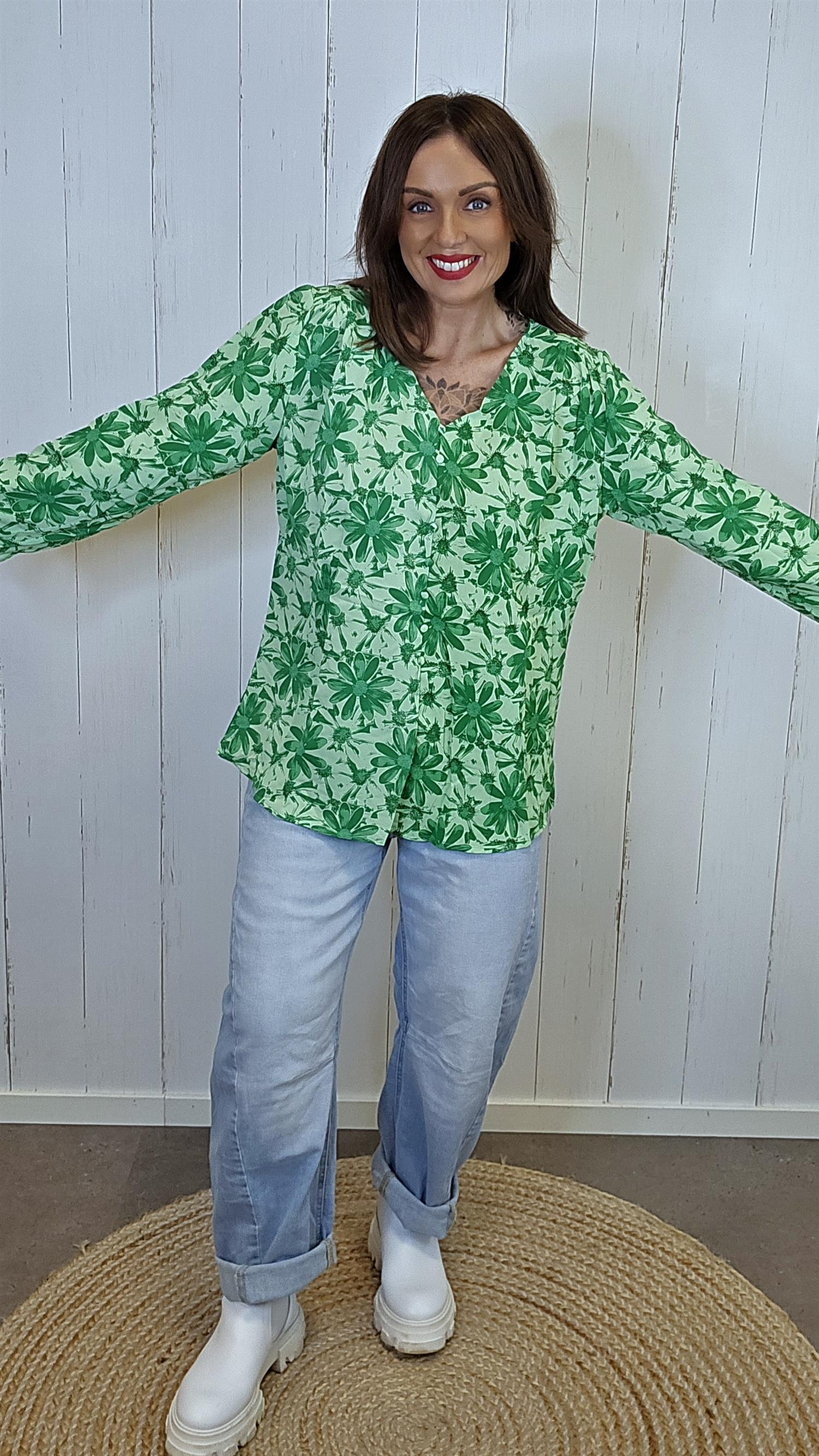 En lett og elegant bluse med et fargerikt blomsterprint. Modellen har fake knepping foran med stofftrukne knapper og lange ermer som kan brettes opp og festes med hempe. Passformen er romslig og komfortabel, og stoffet har et mykt og glatt fall.