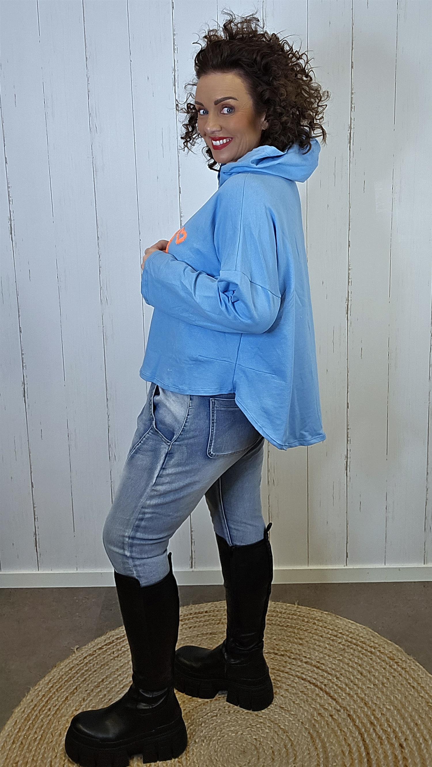 En myk og casual hettegenser med løs og komfortabel passform. Modellen har en delt lengde med kortere front og lengre bakparti som gir et flatterende fall. På brystet har den et søtt motiv i kontrastfarget struktur, og hetten gir et avslappet uttrykk. Laget i myk bomull som føles behagelig mot huden.