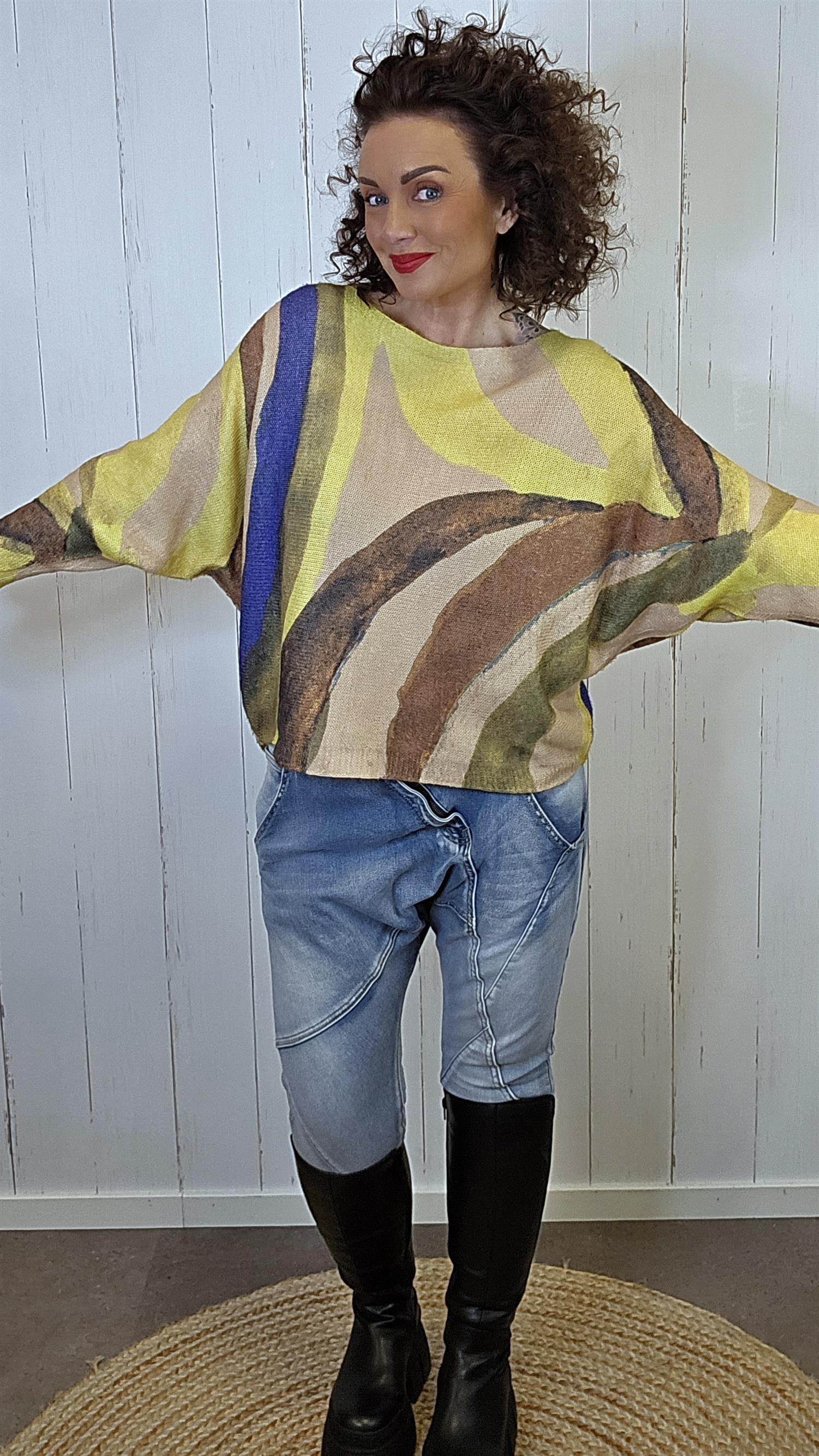 En myk og lett genser med kunstnerisk mønster i varme og klare fargetoner. Modellen har en avslappet og romslig passform med mykt fall og brede ermer som gir et moderne uttrykk. En behagelig hverdagsgenser med unik fargespill.