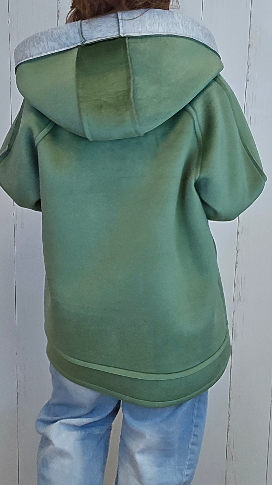 En myk og behagelig hettejakke med avslappet og romslig passform. Modellen har stor hette, kontrastdetaljer i grått og store praktiske lommer i front. Ermene kan brettes opp for et mer uformelt uttrykk. Jakken har et lett børstet stoff som kjennes komfortabelt mot huden.