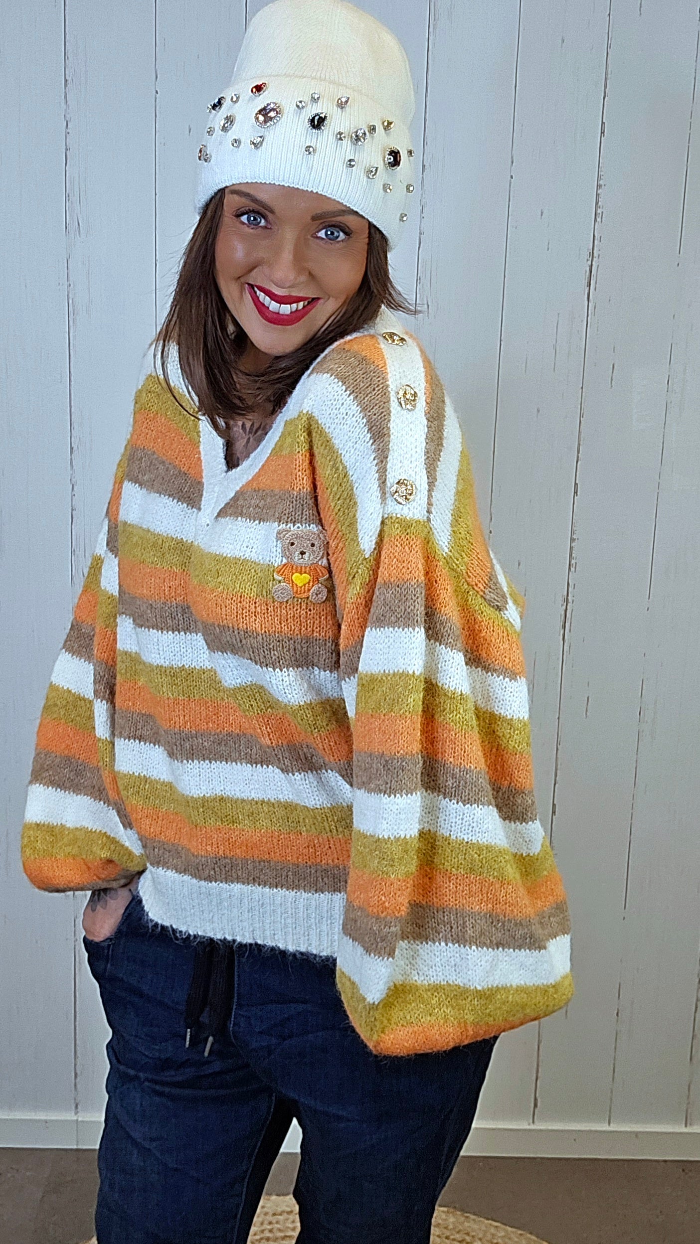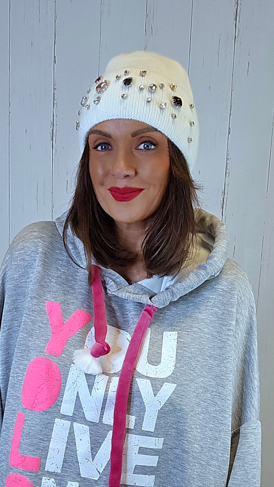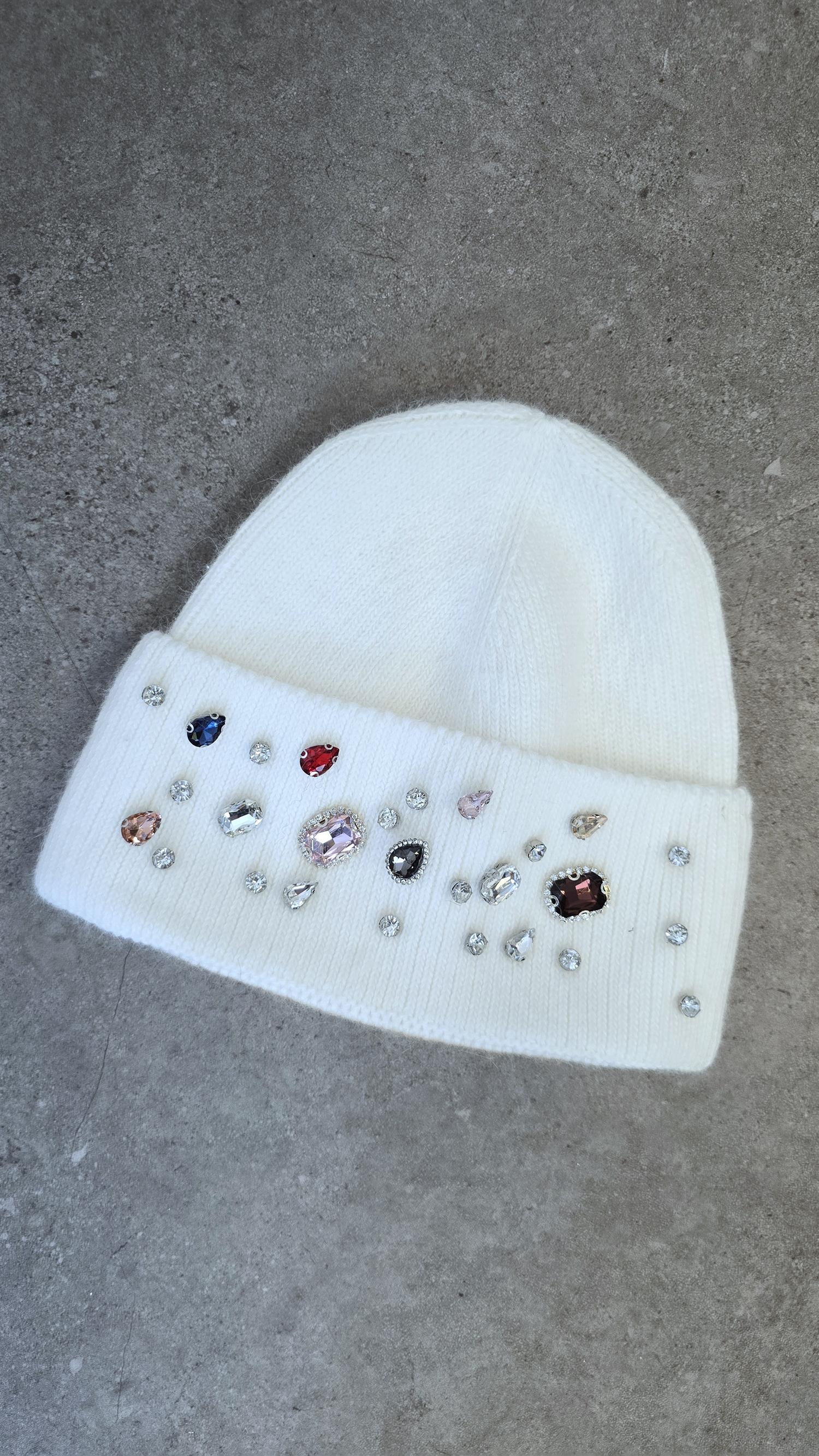 En kul og supertrendy svart lue med glitrende steiner i fronten. Den er ribbestrikket i kvaliteten, noe som gir en god og fleksibel passform. Perfekt for deg som vil holde varmen med stil – et must-have til høst- og vintersesongen!