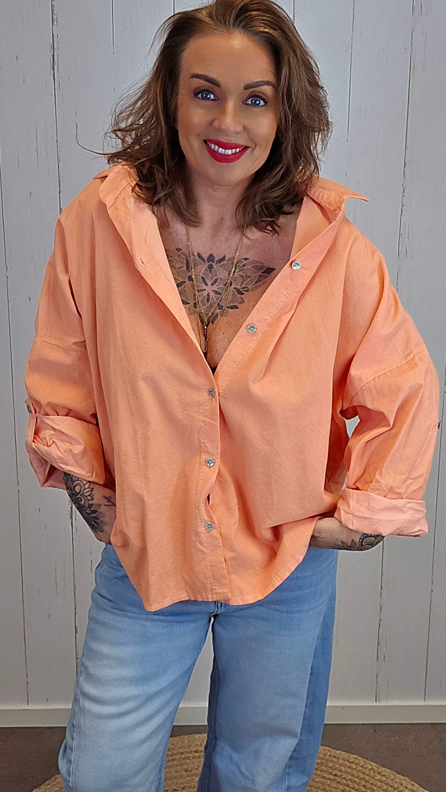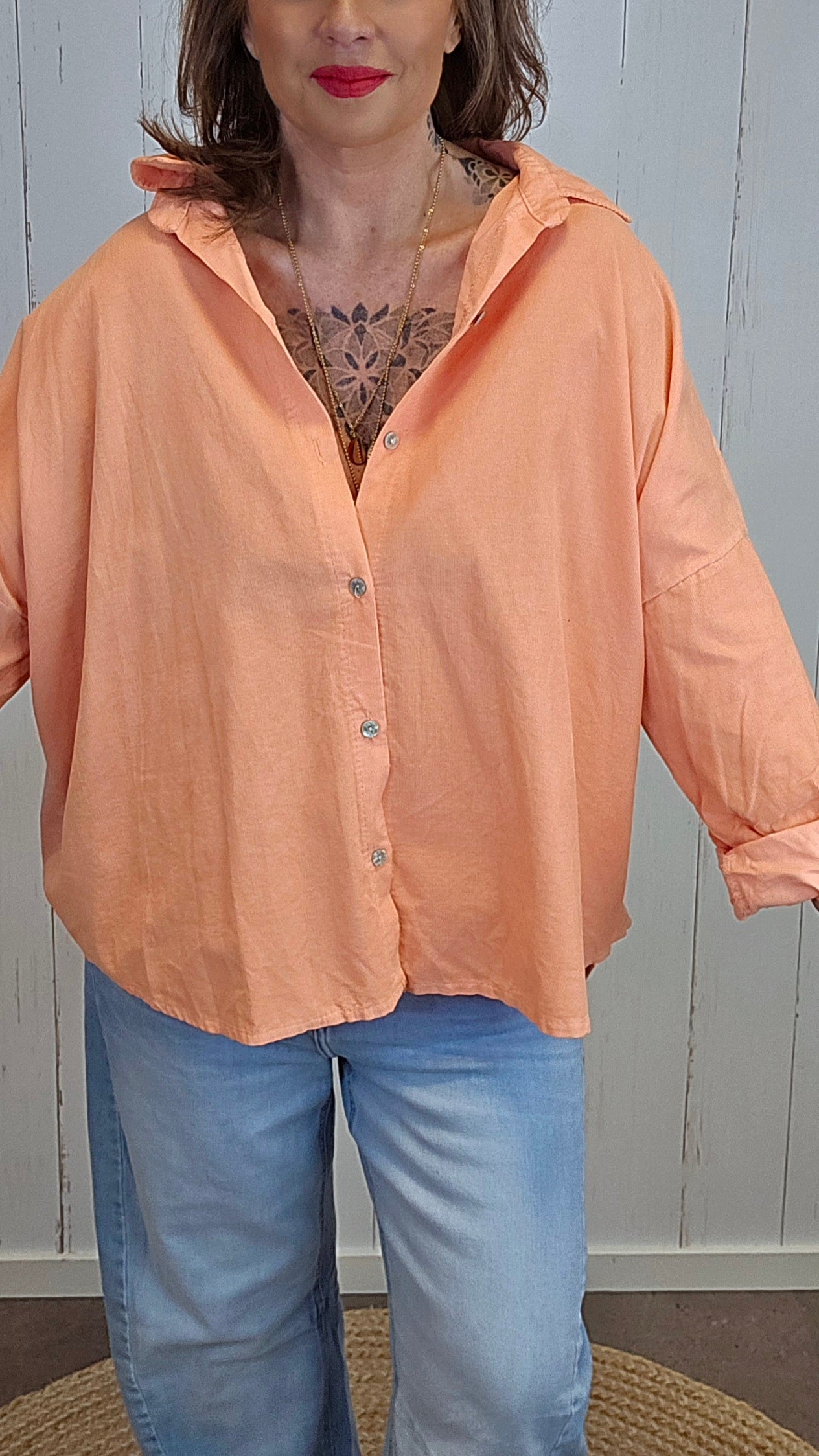 Style skjorten med jeans eller linbukse for en avslappet hverdagslook, eller kombiner den med skjørt og sandaler for et mer sommerlig uttrykk. Ermene kan brettes opp for en lettere og mer uformell stil på varme dager.