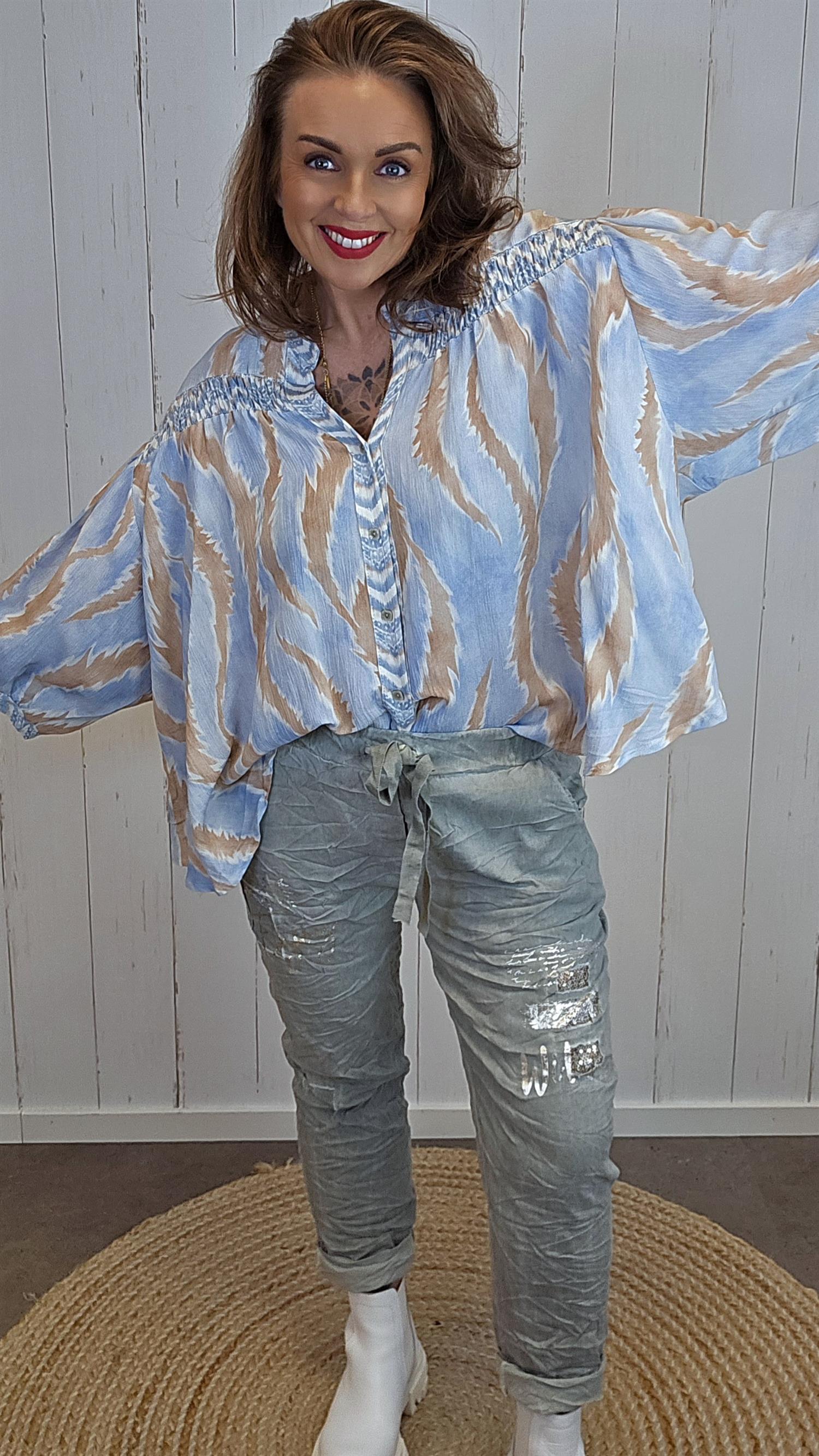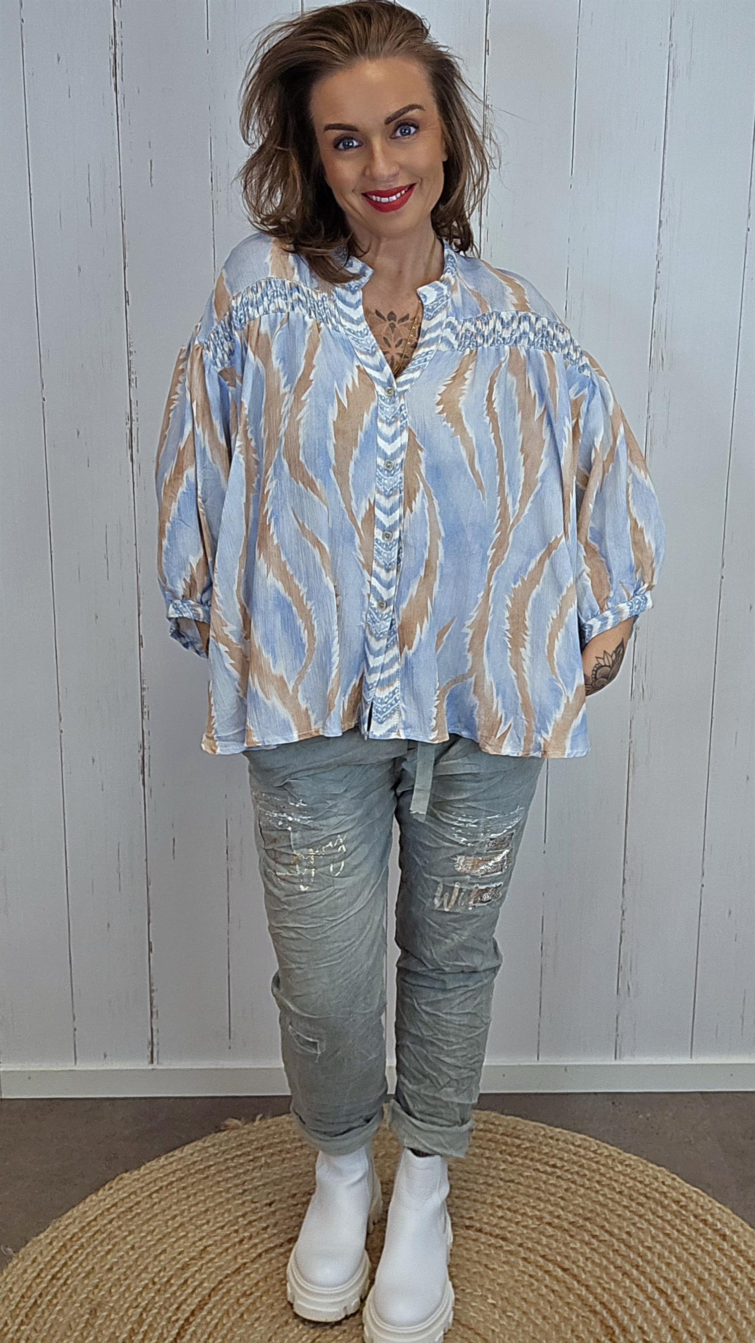 Amelia skjortebluse i mønstret viskose blå