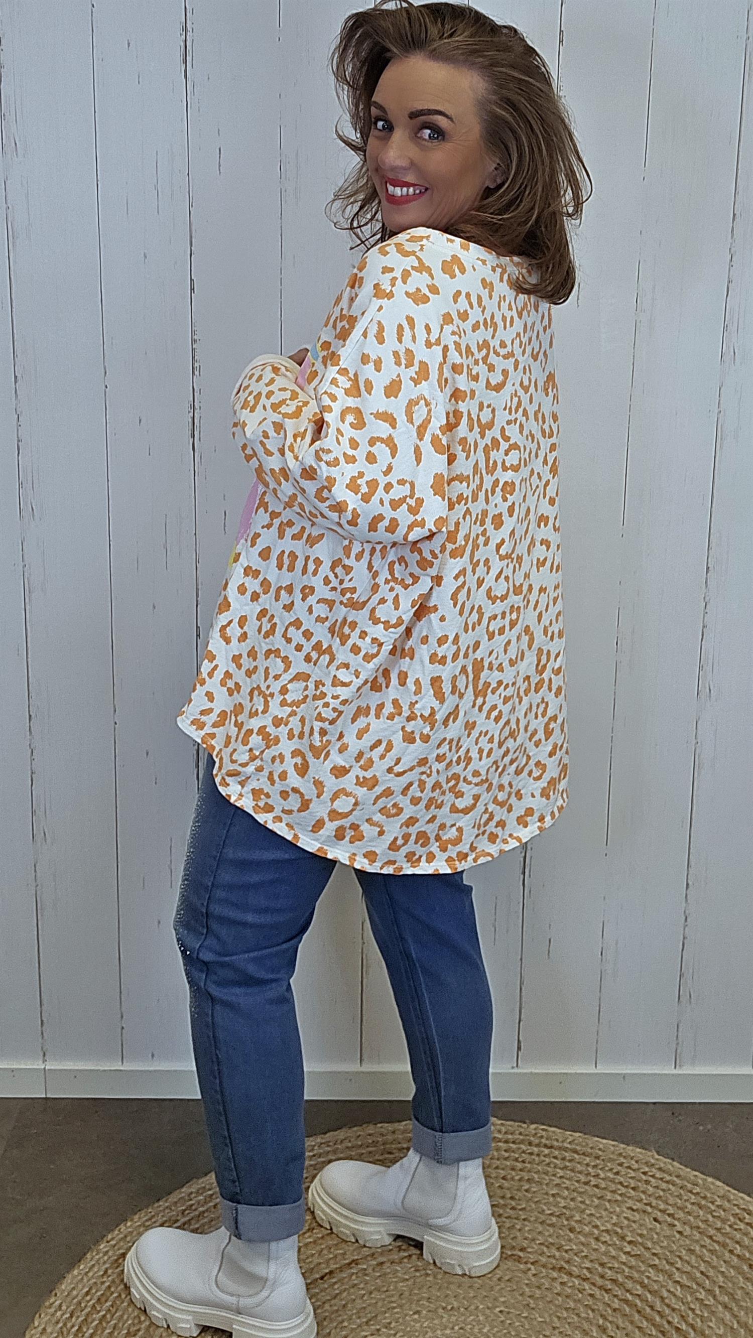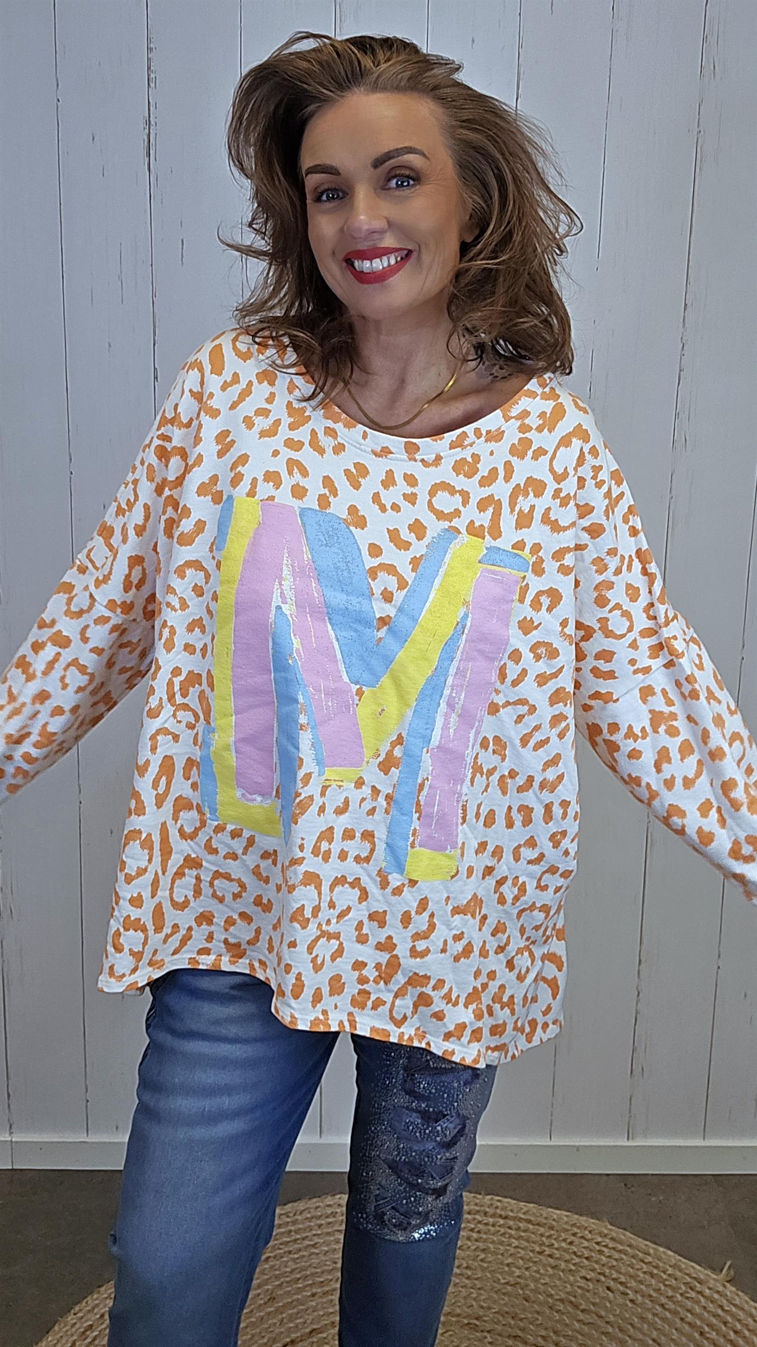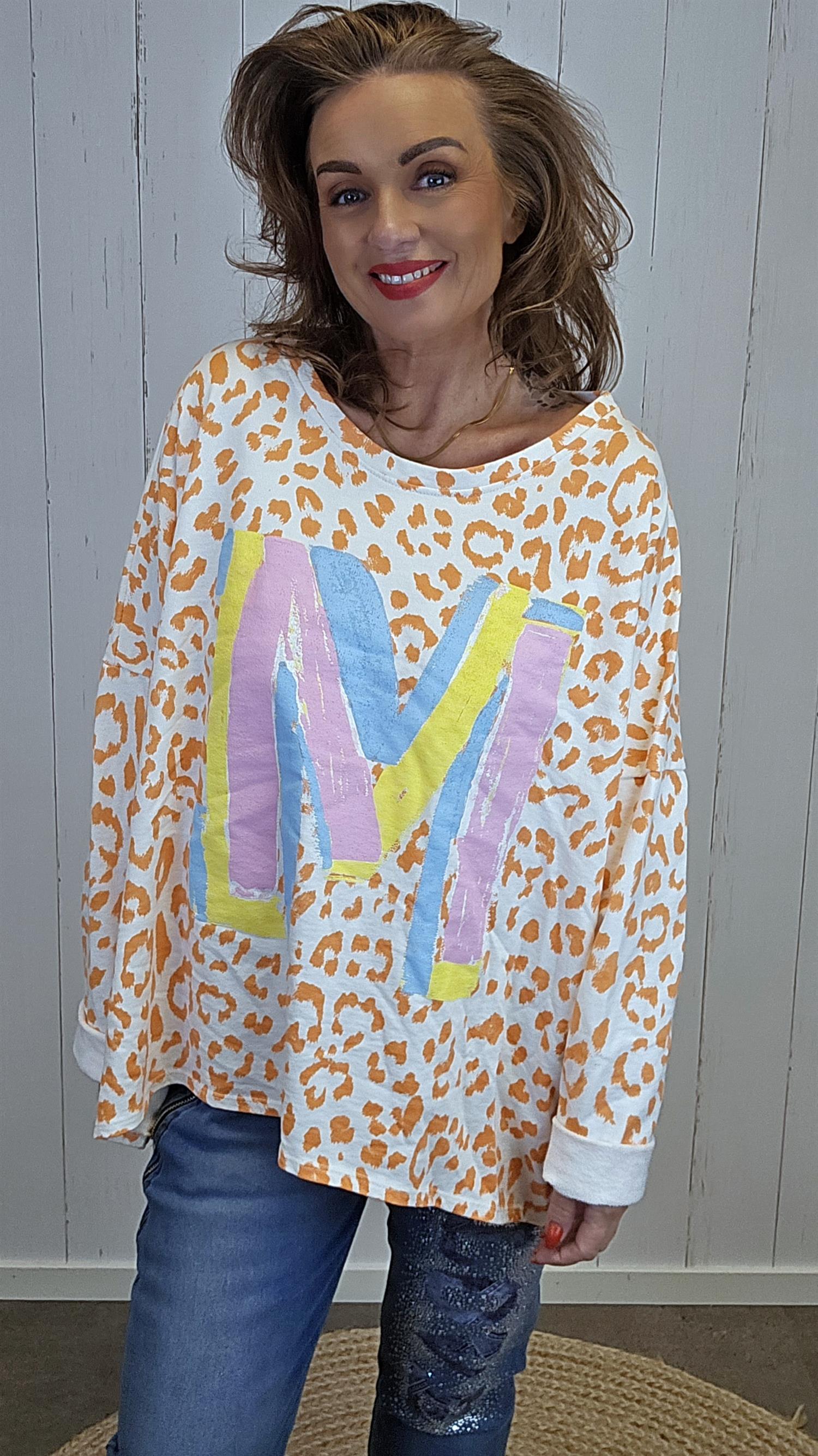 Myk og behagelig topp i ren bomull med avslappet og ledig uttrykk. Modellen har et lekent mønster og dekorativ bokstav i front som gir et sporty og moderne preg. Den lengre lengden gir en fin fallende silhuett, og toppen oppleves luftig og komfortabel på.