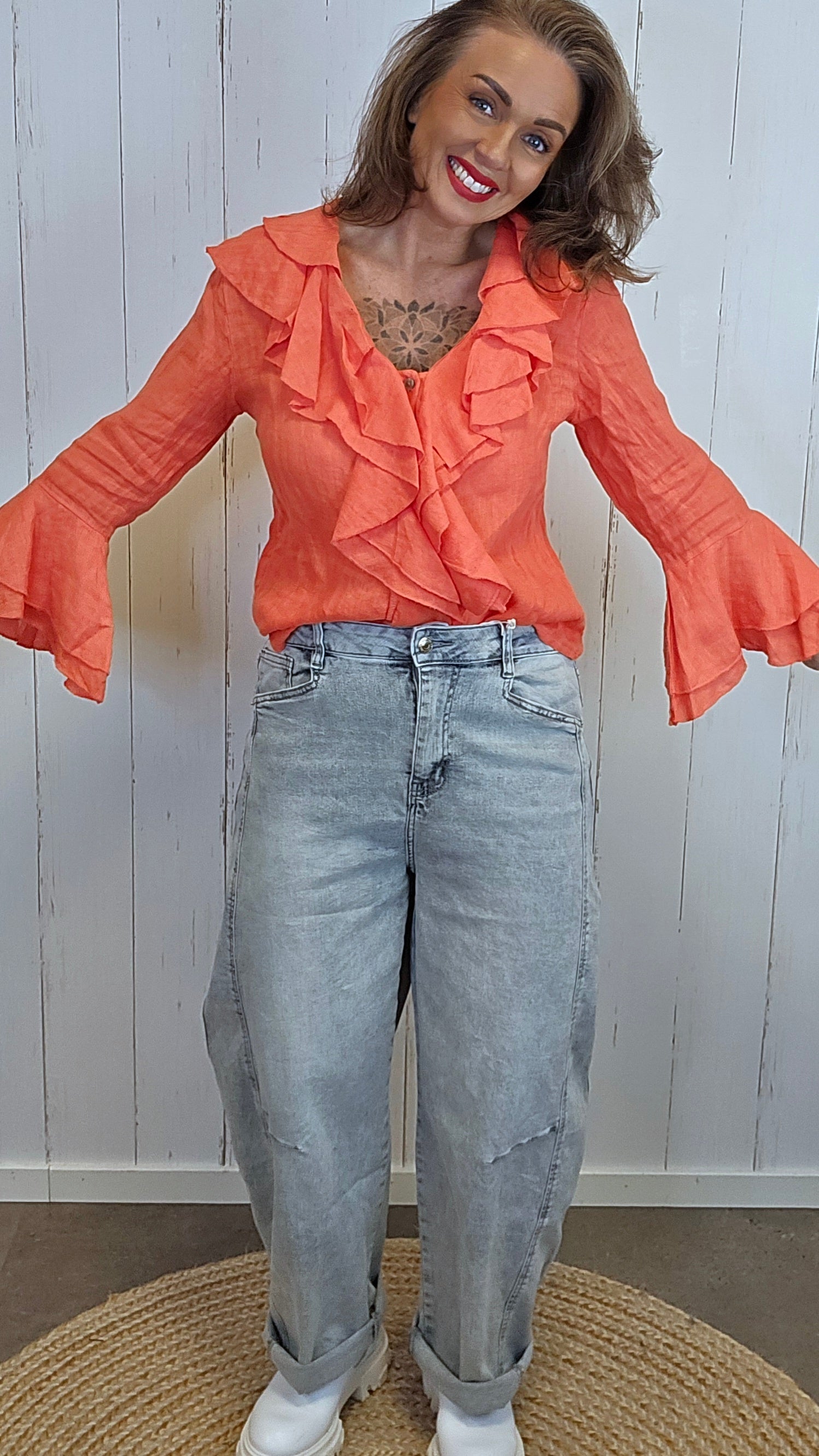 Style jeansen med en enkel topp eller strikk for en ren og moderne look. Like fin til sneakers i hverdagen som til boots eller sandaler for et mer gjennomført uttrykk.