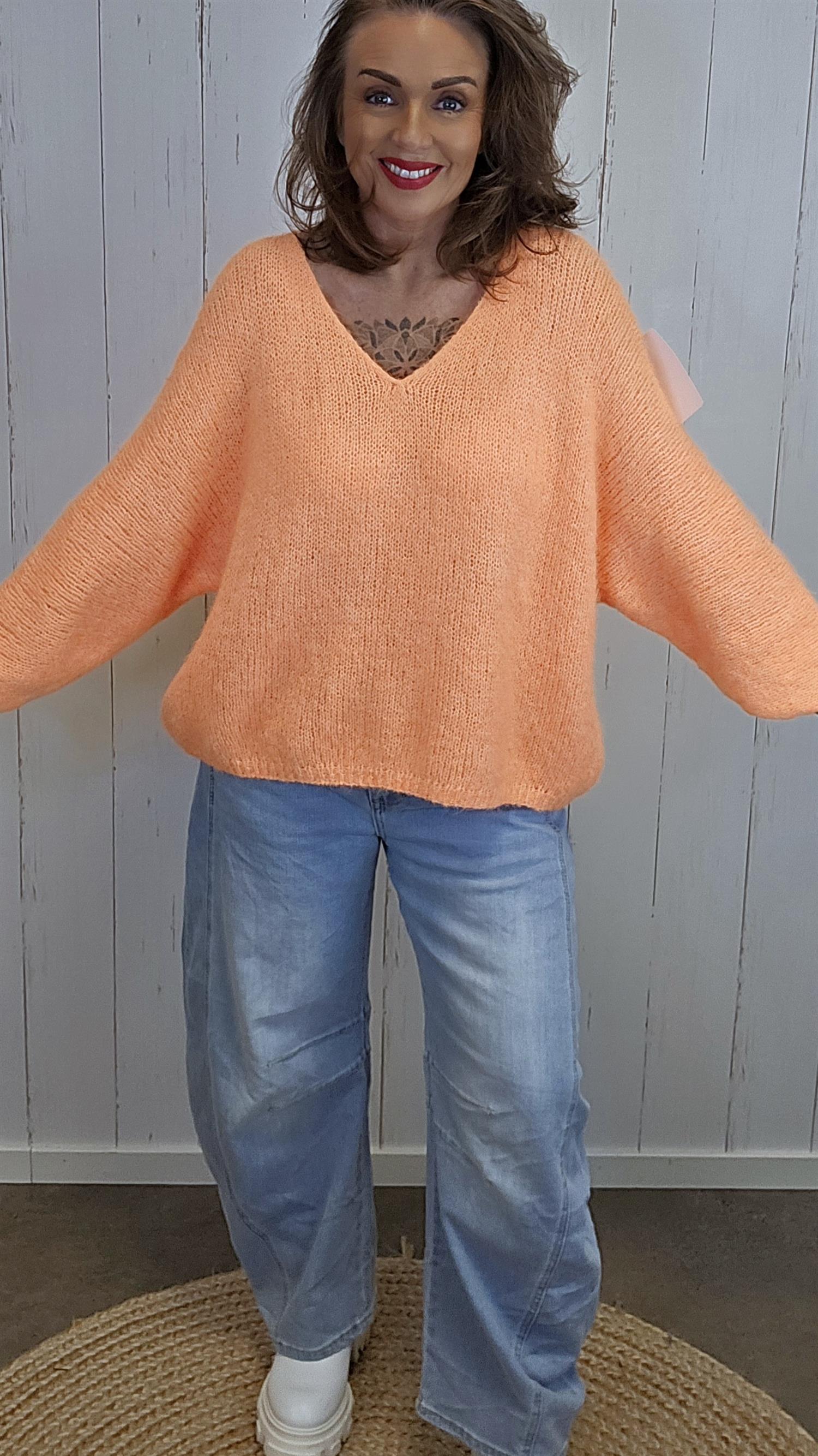 Anna genser er en myk, fluffy og lett strikket genser med avslappet passform. Den har en pen og dyp V-utringning som gir et flatterende uttrykk, og den luftige strukturen gjør den behagelig både inne og ute gjennom hele sesongen. De vide ermene og den avrundede kanten nederst gir plagget en naturlig og elegant fasong.