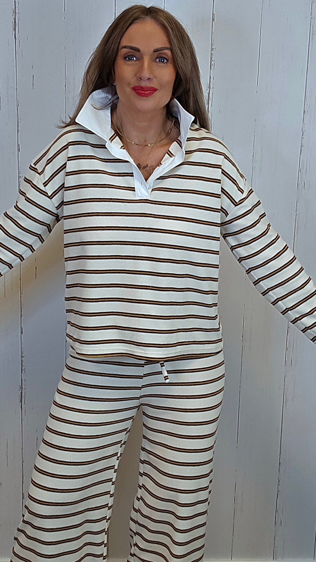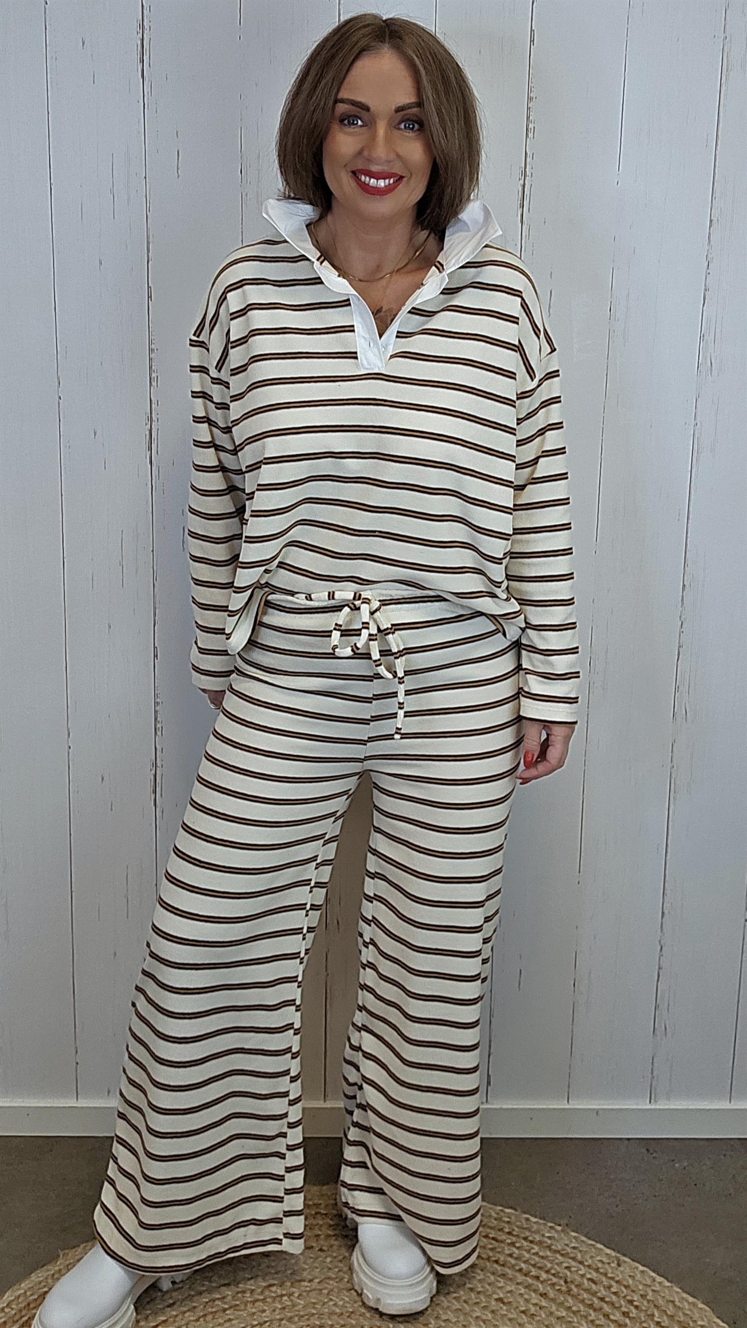 Myk og behagelig genser i frotte bomull med klassiske striper og kontrastkrage. Modellen har en avslappet fasong og lett struktur i stoffet som gjør den komfortabel å ha på gjennom hele dagen. En tidløs genser som passer like godt til jobb som til fritid.