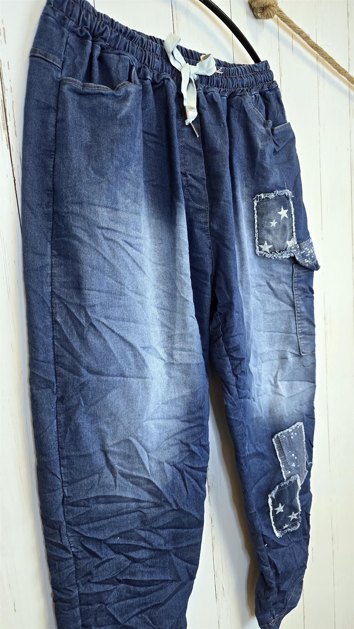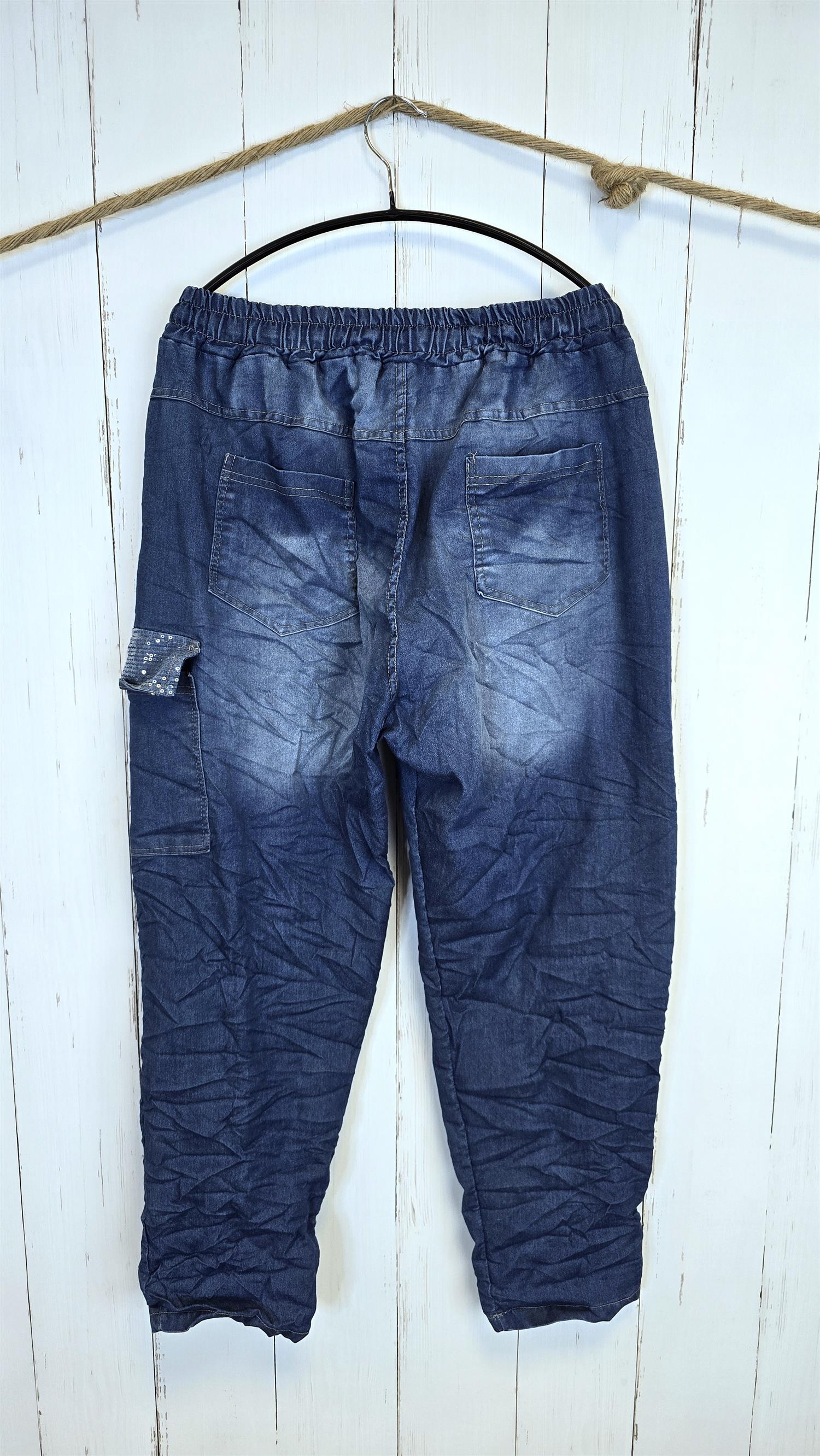 Komfortabel og myk bukse med avslappet passform og dekorativt uttrykk. Buksen har praktiske lommer, med to foran, to bak og ekstra lommer på siden av lårene som gir et funksjonelt og tøft preg. Strikk og knyting i livet gir god fleksibilitet og behagelig passform gjennom hele dagen.