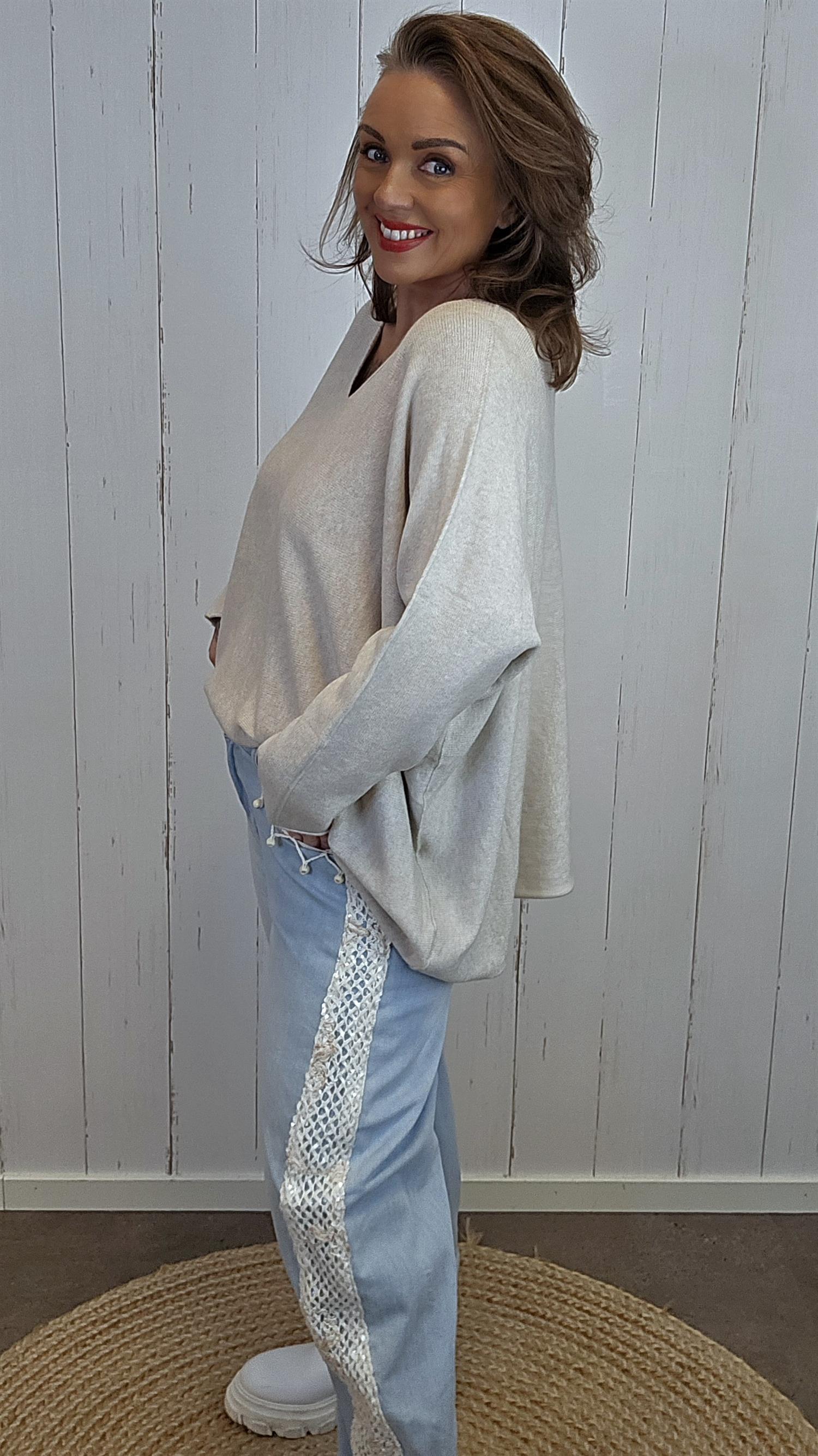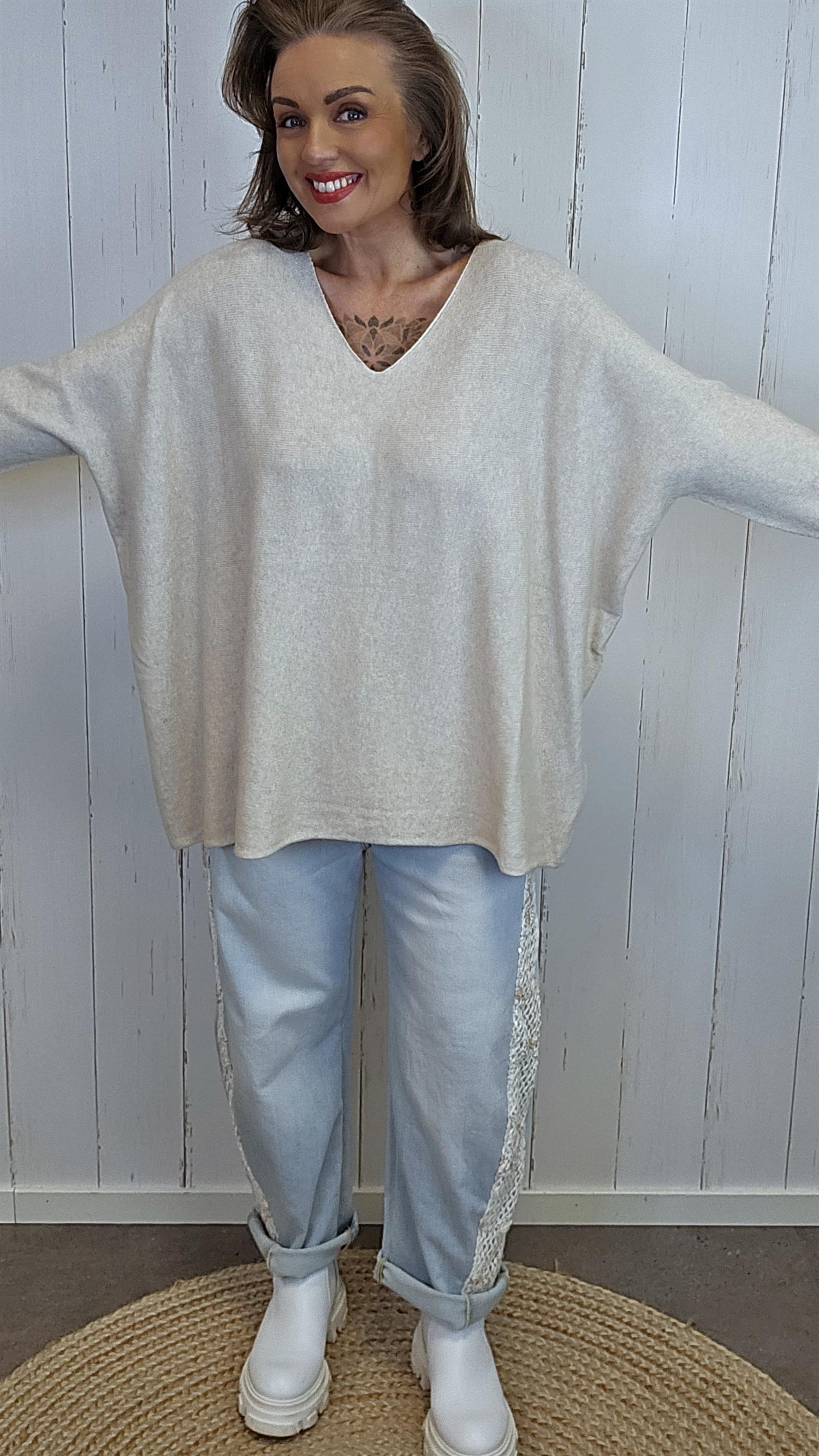 Malena Genser er en elegant og tidløs genser med dyp V-hals og løs, flytende passform. Den myke kvaliteten i viskoseblanding gir en glatt og komfortabel følelse mot huden. En allsidig favoritt du enkelt kan style både til hverdags og jobb.