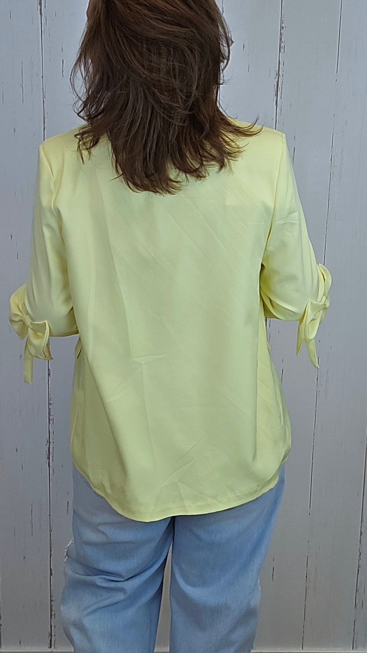 Elegant blazer med dekorativ sløyfedetalj på begge ermer som gir et feminint og sofistikert uttrykk. Blazeren har klassisk slag og knappelukking foran. Modellen er ren og minimalistisk uten lommer, noe som gir et pent og ryddig snitt. Perfekt både til jobb, selskap og hverdagsbruk.