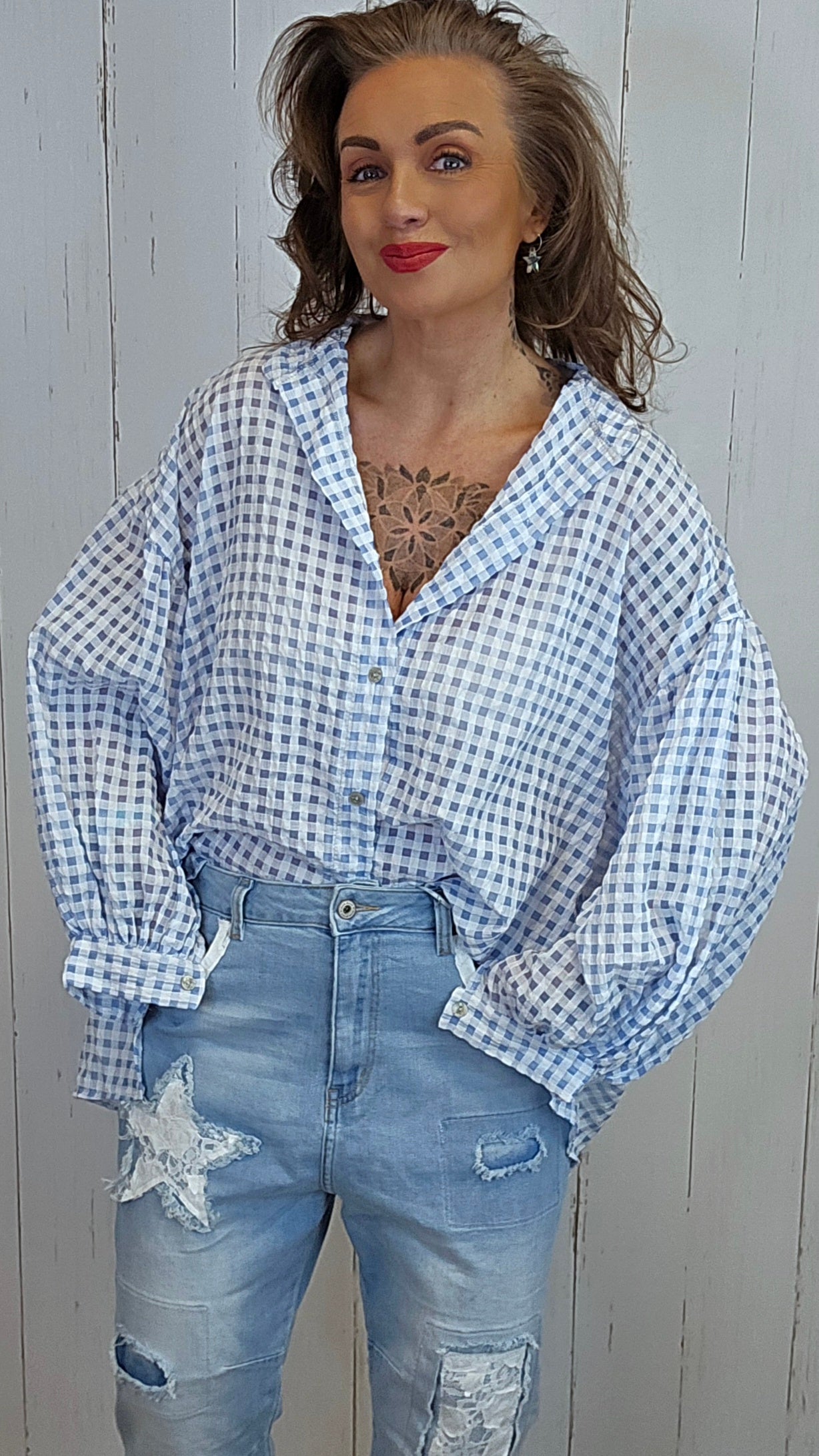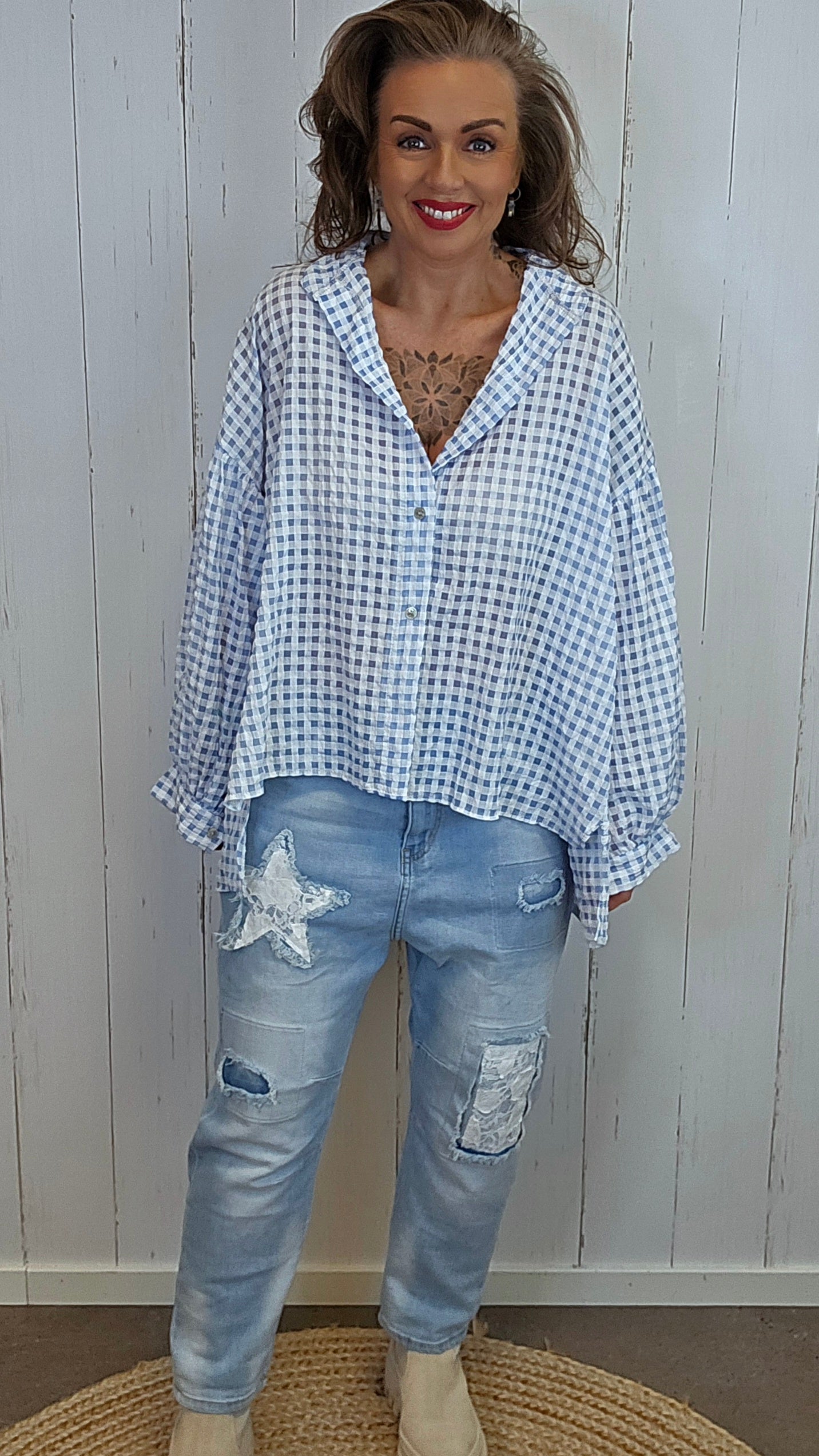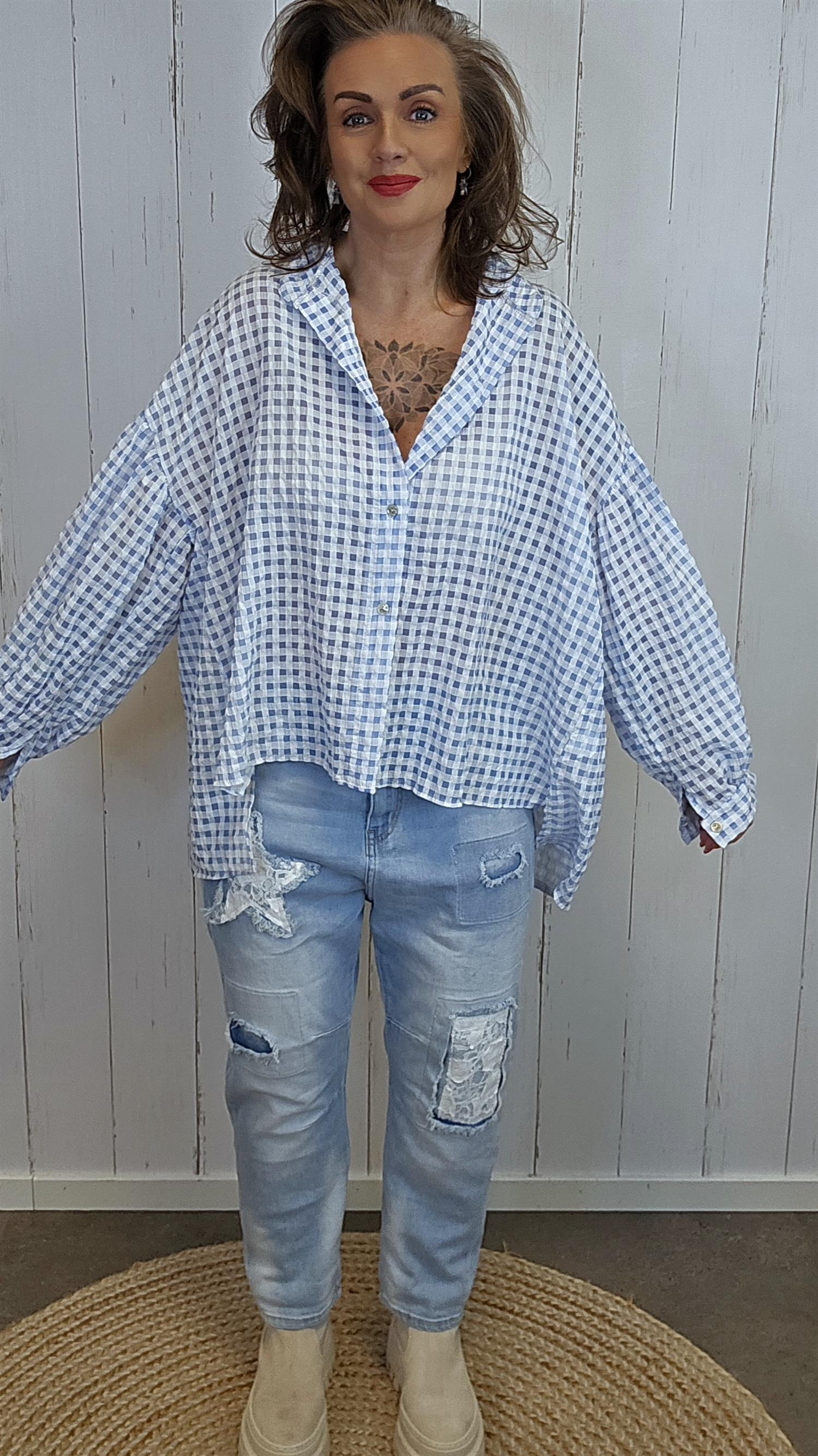 Kari rutete skjorte blå