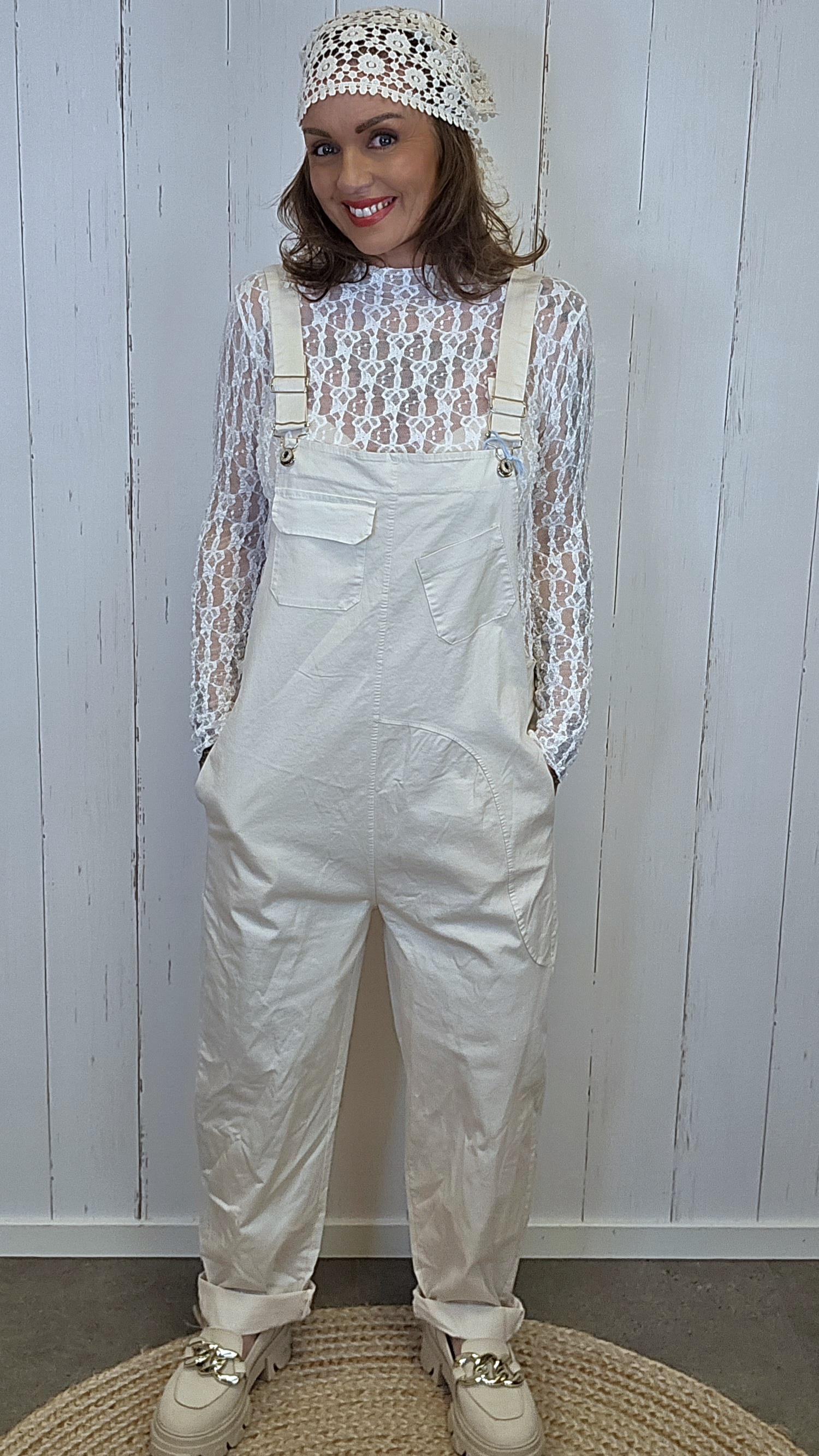 Tøff og komfortabel snekkerbukse i mjuk og elastisk kvalitet. Modellen har regulerbare seler med spenner, rett og ledig passform og brett nederst på beina for ein avslappa look. Buksen har to lommer i front på bryststykket, to praktiske sidelommer og to lommer bak – perfekt kombinasjon av stil og funksjon.