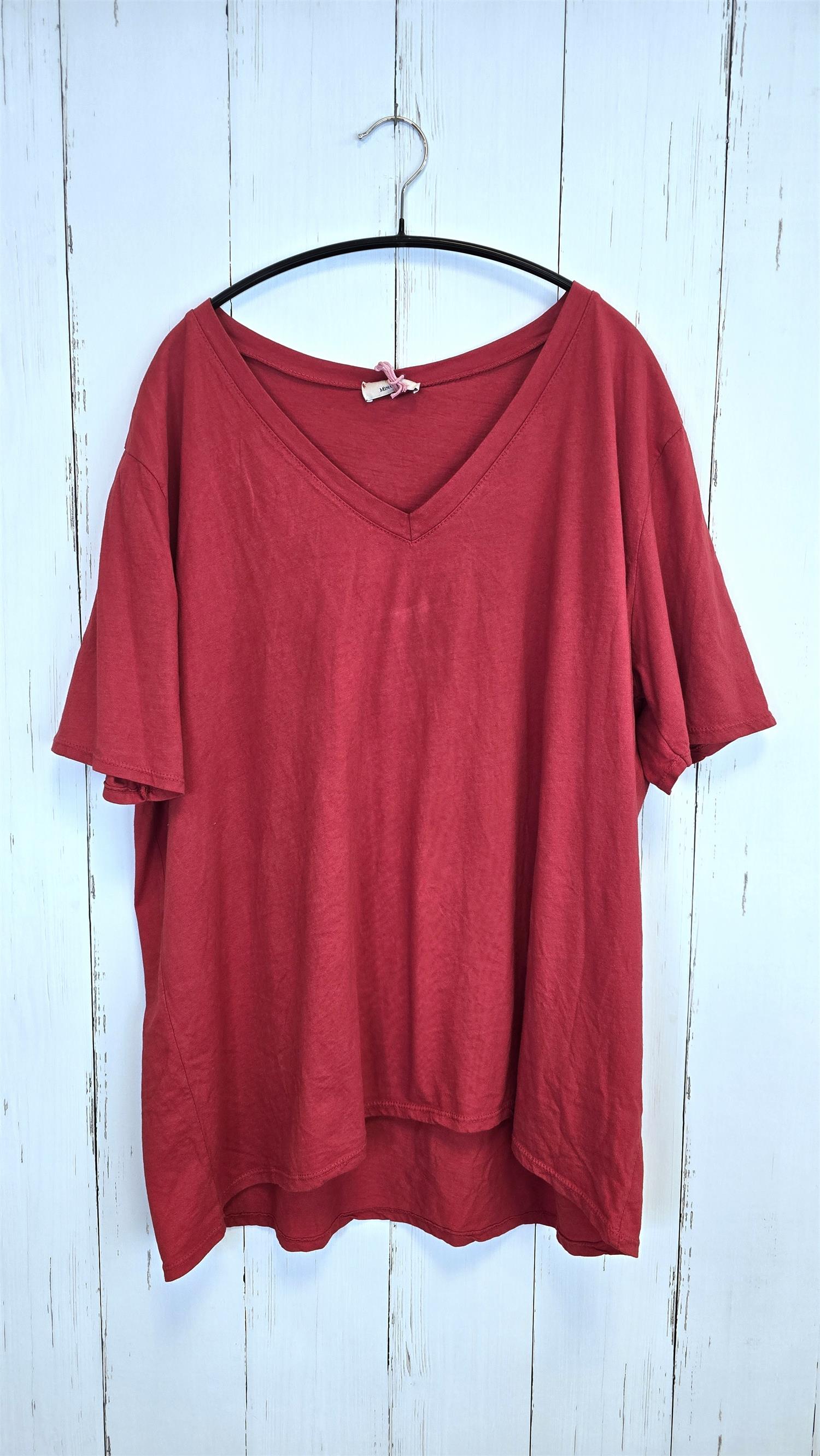 Myk og behagelig t-skjorte i en klar rød farge. Modellen har V-hals, korte ermer og en løs, flatterende passform som faller fint over kroppen. En perfekt basic som er enkel å style og passer til det meste i garderoben.