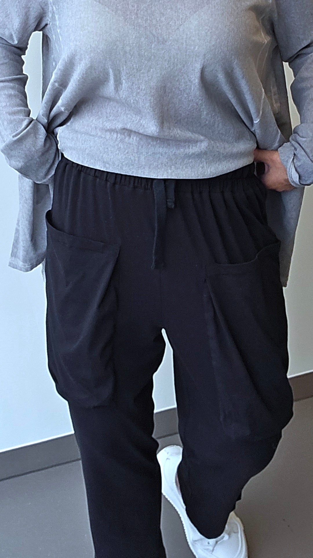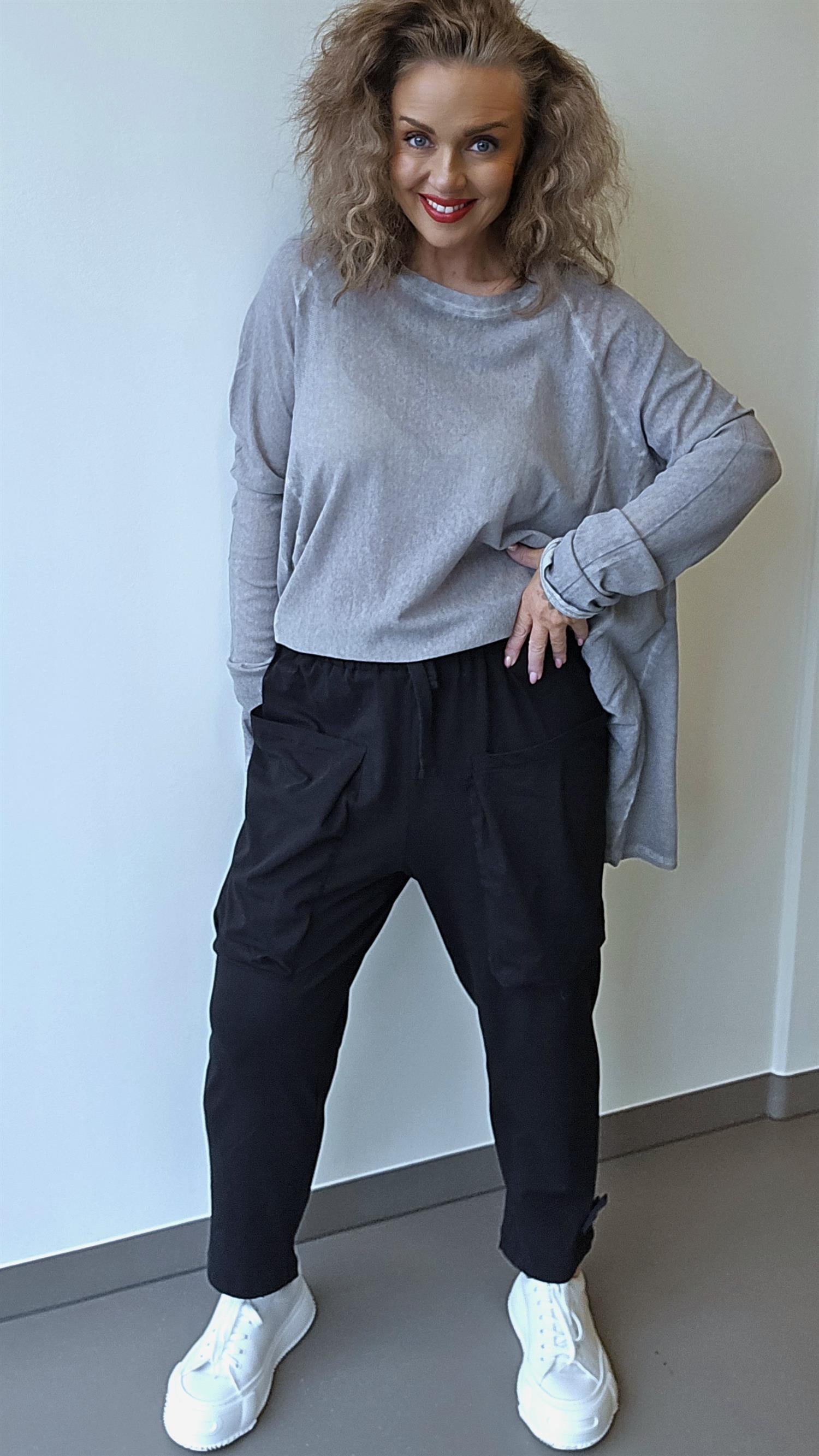Kjempemyk og behagelig joggebukse i tynn og deilig bomullskvalitet. Modellen har strikk og snøring i livet, som gir fleksibel og komfortabel passform. I front har den store poselommer som gir et ekstra kult og avslappet uttrykk. Den har også lommer bak, fint plassert og sentrert på rumpen. Nederst på det ene benet sitter et lite plu-merke som gir en gjennomført detalj. Buksen har god vidde i lårene og sitter løst og komfortabelt.