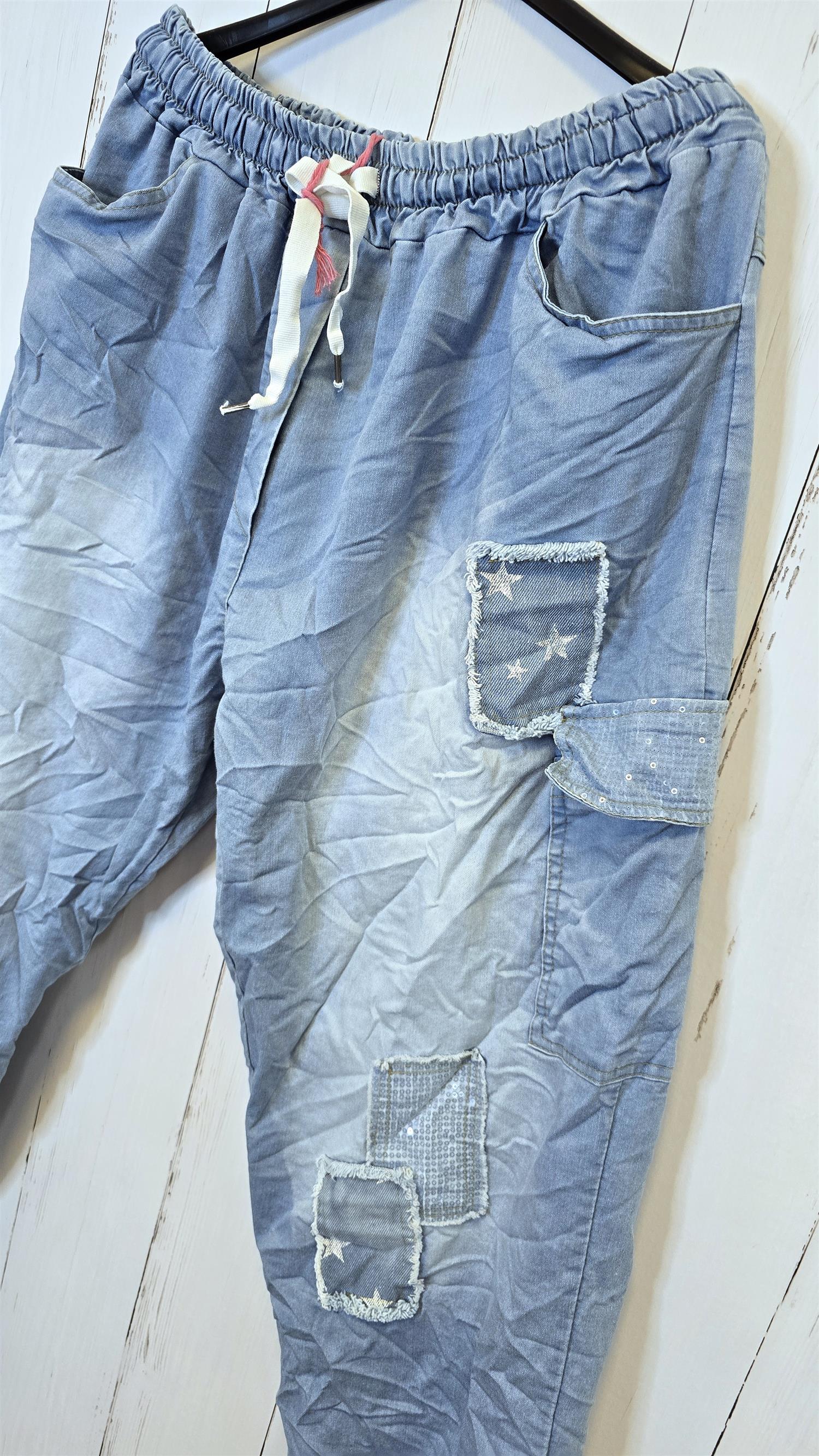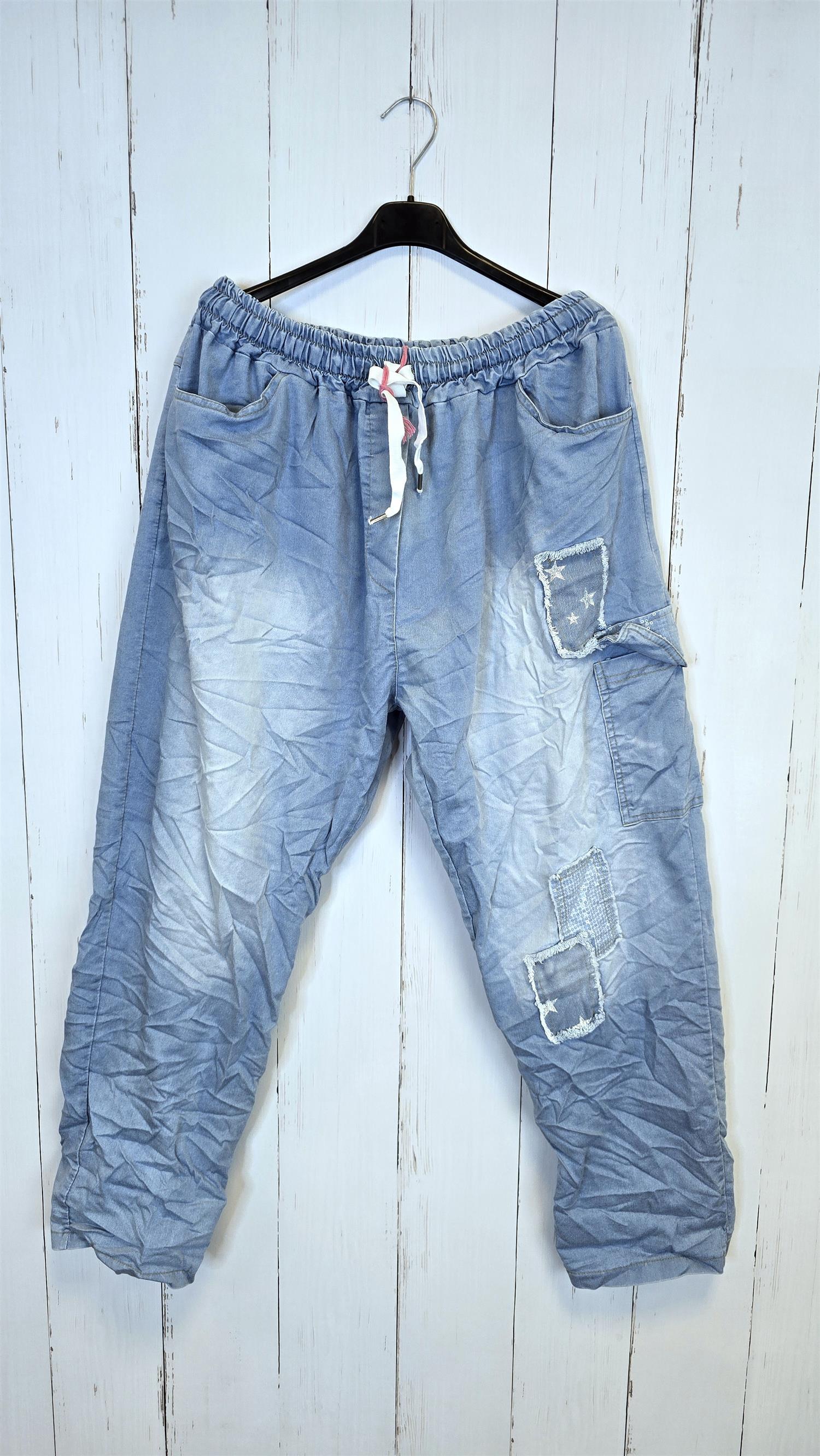 Komfortabel og myk bukse med avslappet passform og dekorativt uttrykk. Buksen har praktiske lommer, med to foran, to bak og ekstra lommer på siden av lårene som gir et funksjonelt og tøft preg. Strikk og knyting i livet gir god fleksibilitet og behagelig passform gjennom hele dagen.