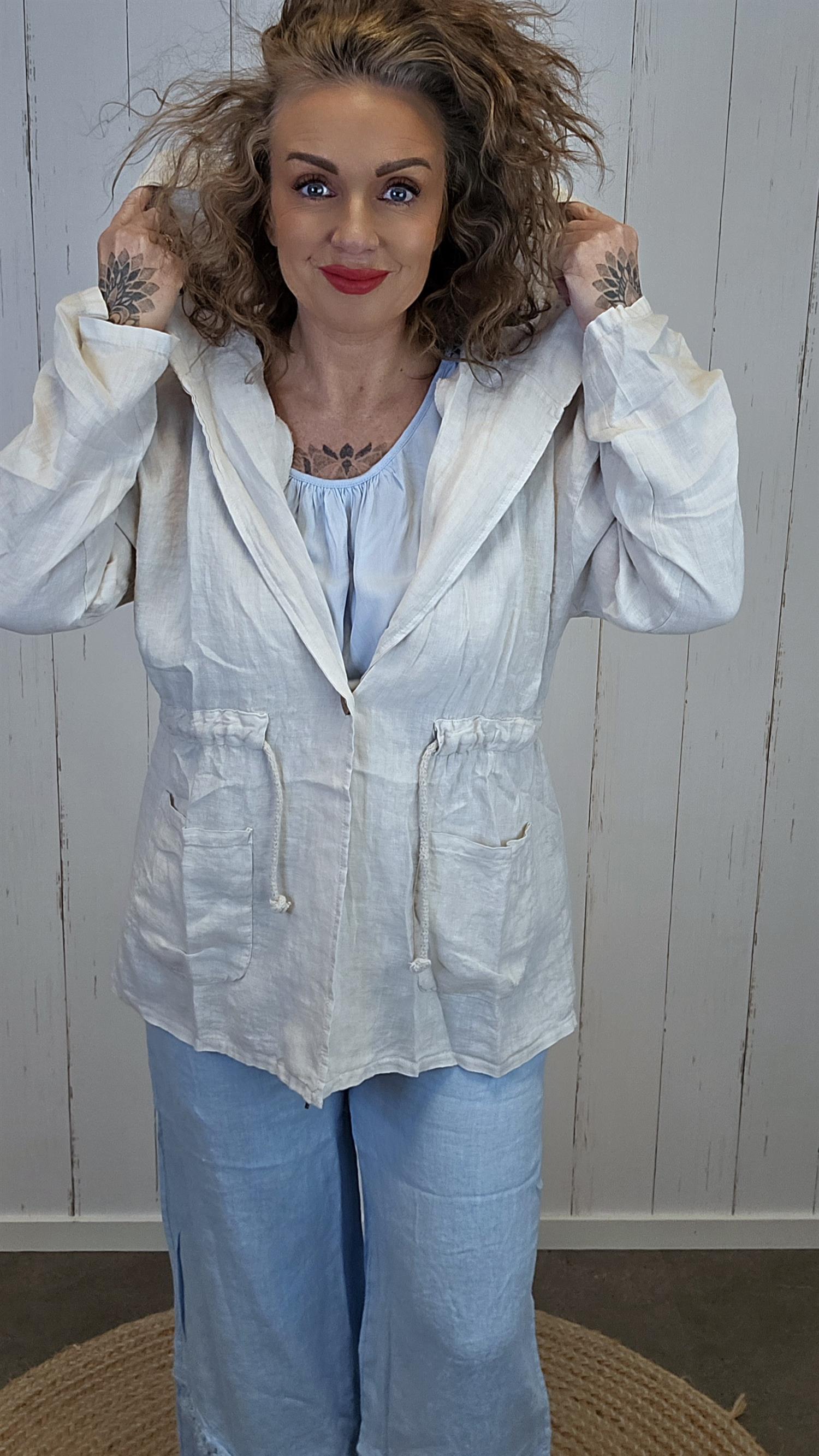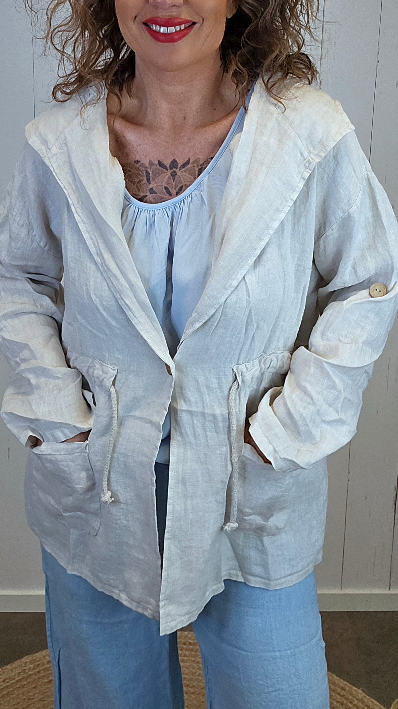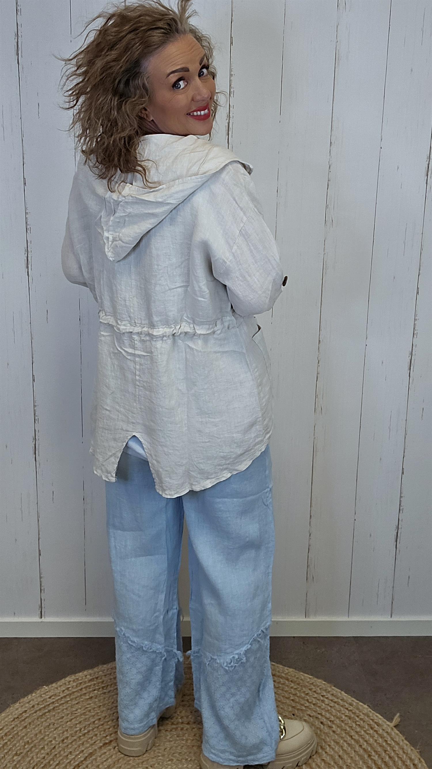Den luftige linstrukturen gjør plagget behagelig å bruke og perfekt som et lett ytterplagg på vår- og sommerdager.