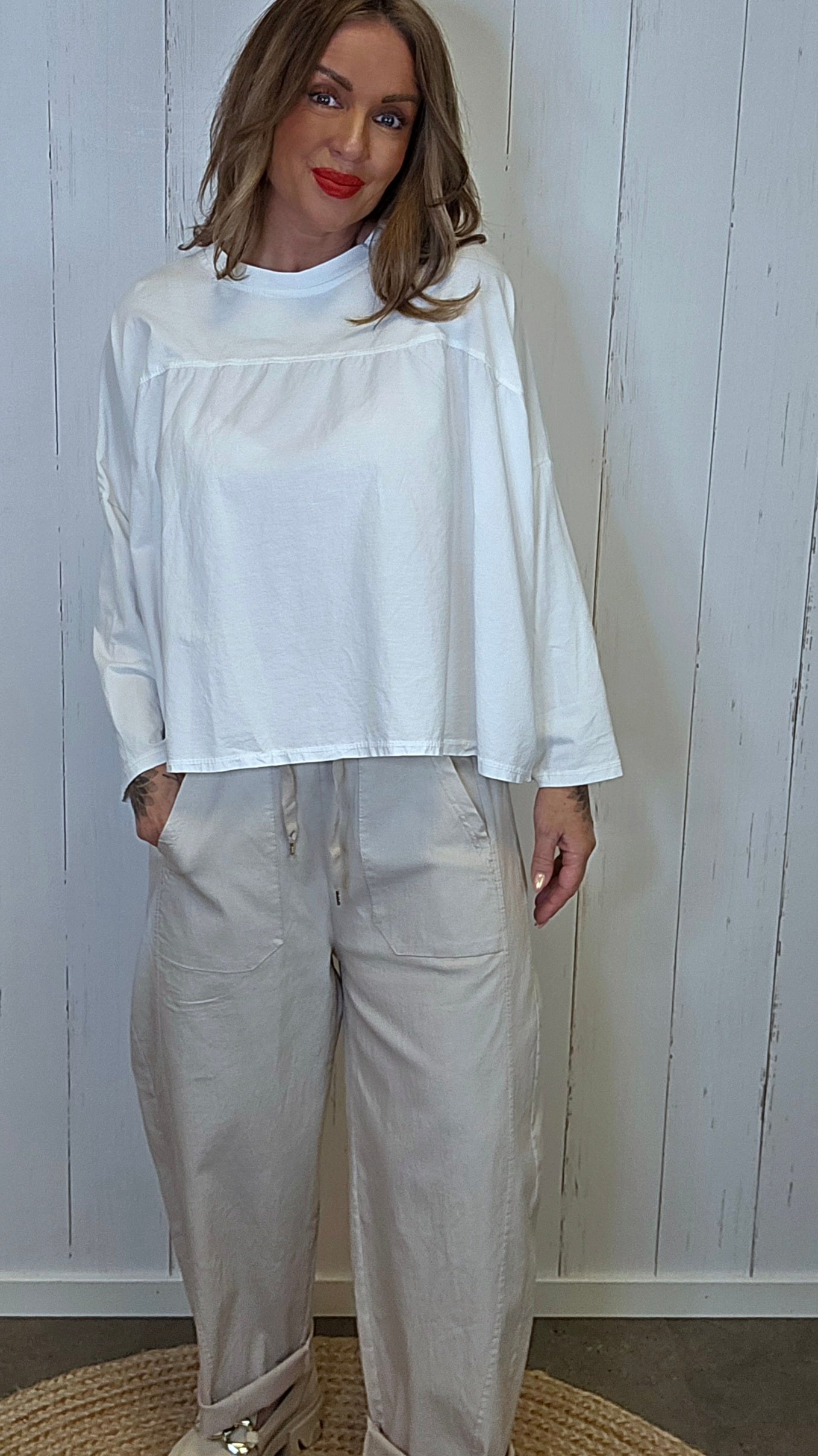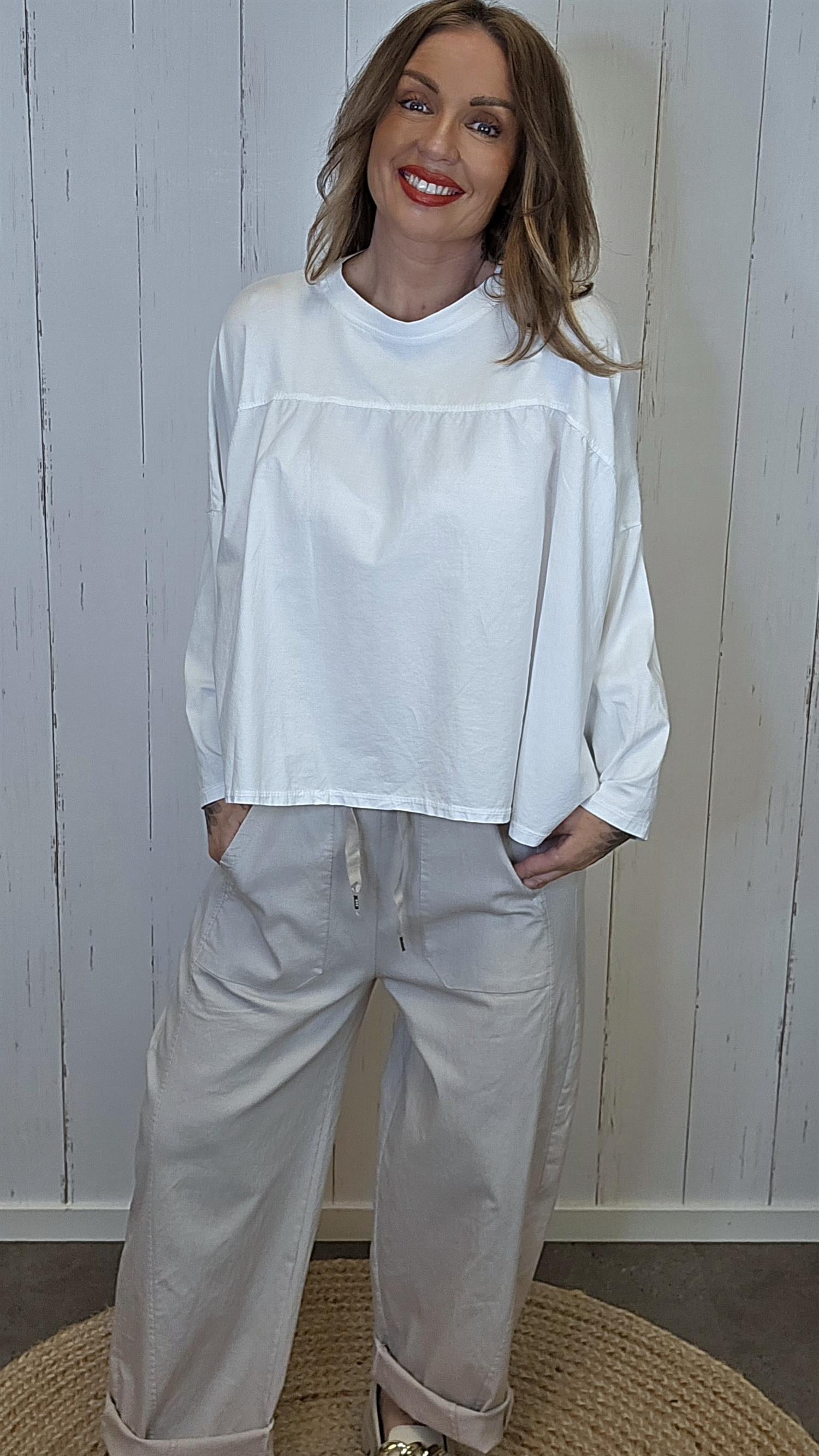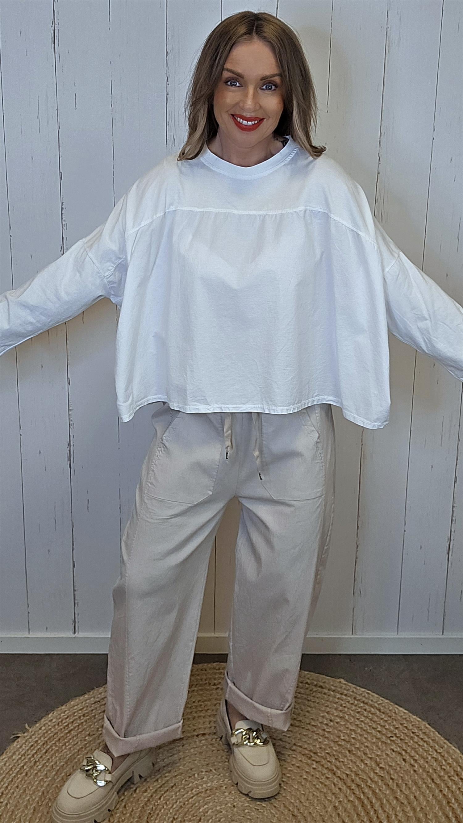 Myk og komfortabel topp med avslappet passform. Modellen har rund hals og lange ermer med et lett og luftig uttrykk som gjør den behagelig å bruke. En enkel og anvendelig topp som passer perfekt til både bukser, jeans og skjørt.