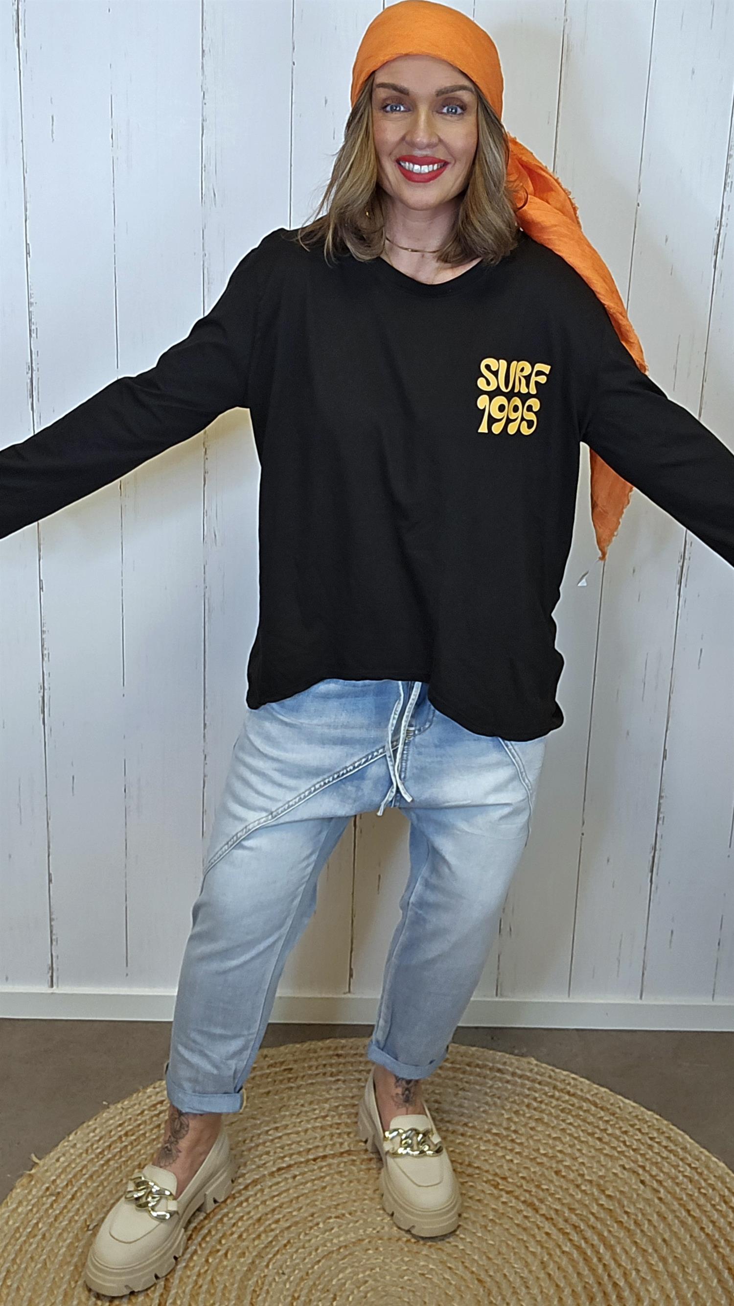 Kul og avslappet langermet topp med “SURF 199S”-print foran som gir et sporty og trendy uttrykk.
