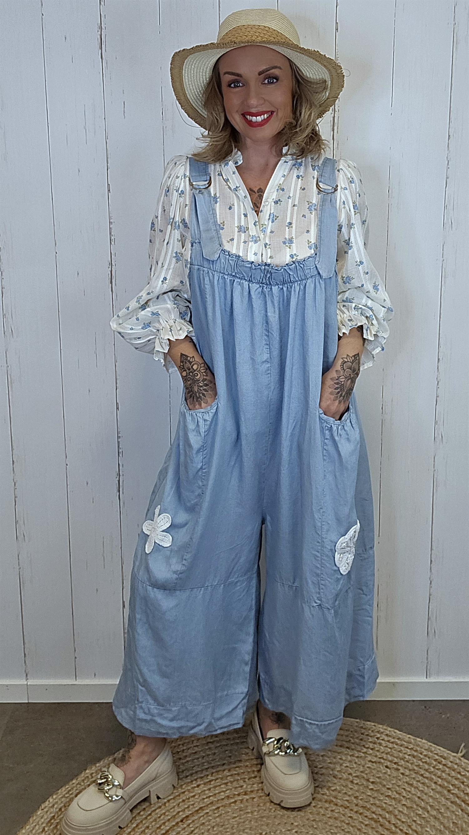 Denne jumpsuiten har en avslappet passform med justerbare stropper som gir en behagelig og fleksibel tilpasning. Stoffet faller fint og gir et elegant, men samtidig casual uttrykk. Praktiske lommer i sidene og dekorative detaljer gir plagget det lille ekstra.